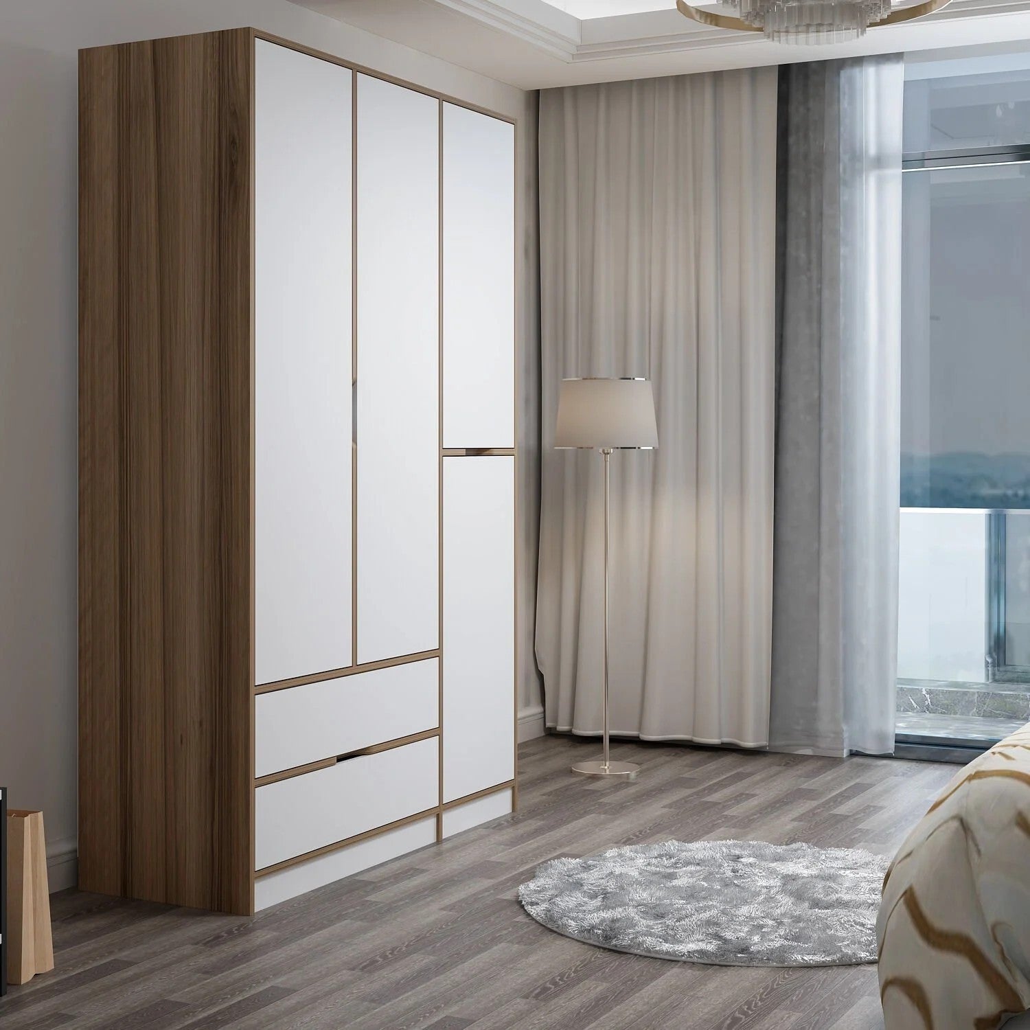 A combinação de cores branca e dore adiciona um toque moderno a qualquer sala, complementando uma variedade de estilos de decoração. Se você tem uma estética minimalista ou prefere uma aparência mais eclética, este guarda -roupa se encaixará.