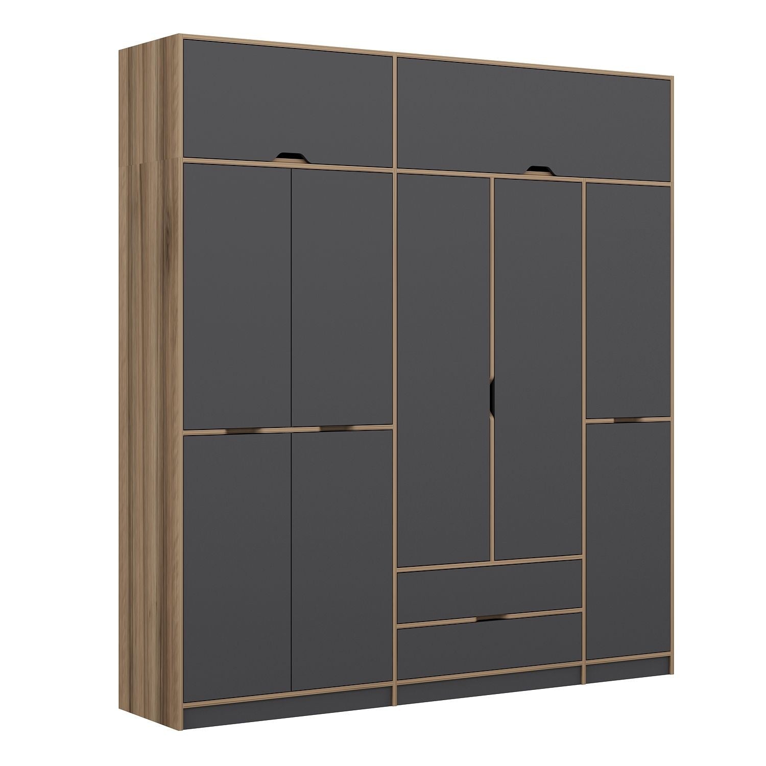 Com uma largura de 232 cm, altura de 253 cm e profundidade de 52 cm, este guarda -roupa oferece amplo espaço de armazenamento para todas as suas roupas e acessórios. As inúmeras prateleiras oferecem muito espaço para manter tudo elegante e arrumado, enquanto a opção de consertá -lo na parede garante estabilidade e segurança.