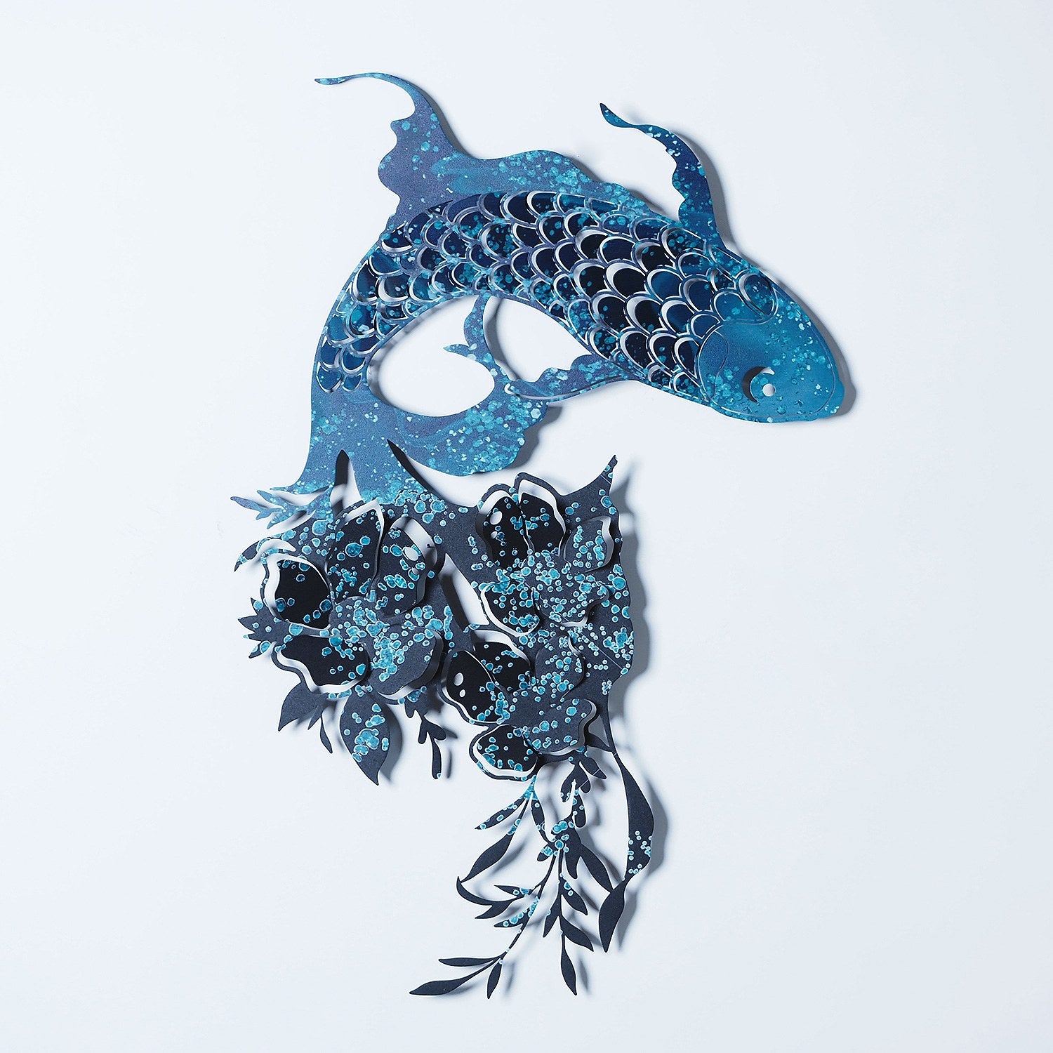 Transforme o seu espaço numa obra de arte com esta magnífica Carpa Koi em aço azul, uma peça decorativa que combina na perfeição a tradição oriental com o design contemporâneo.