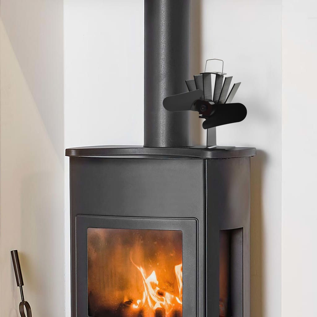 Ventilador de fogão alimentado a calor 2 lâminas preto