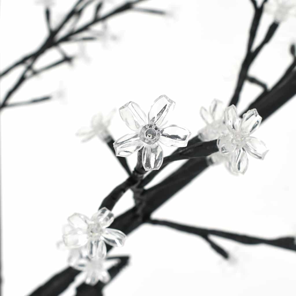 Esta árvore acende-se com luzes LED economizadoras de energia que iluminam a sua divisão com uma luz azul, servindo também como iluminação indireta. As flores de cerejeira são feitas de um material macio, portanto são flexíveis e difíceis de partir. Os ramos podem ser expandidos separadamente e a base de metal aumenta a sua estabilidade. A entrega também inclui um adaptador com 8 funções. Esta decoração de Natal é perfeitamente adequada para utilização interna e externa.
