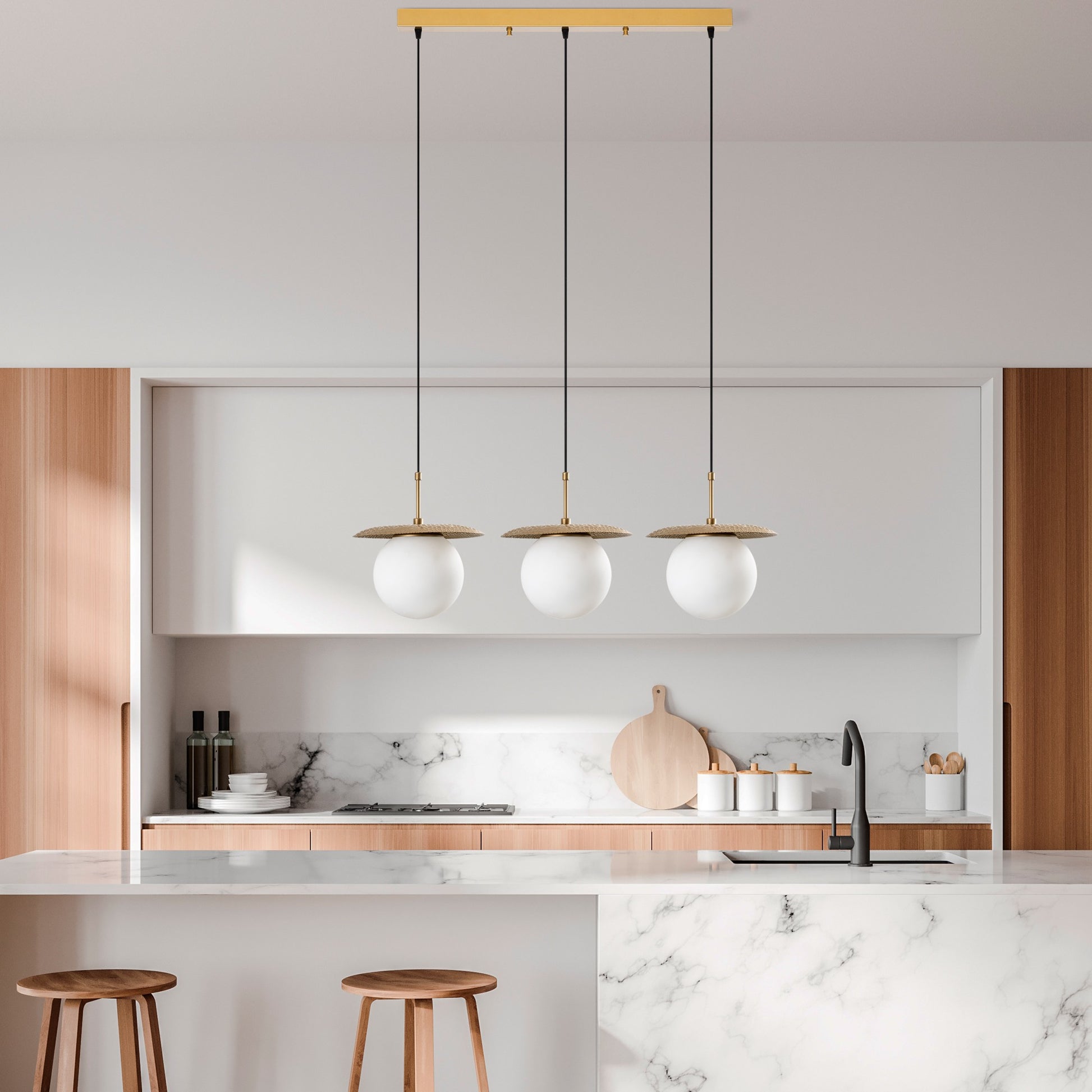 Com três casquilhos e27, este candeeiro pode acomodar lâmpadas até 40w cada (lâmpadas não incluídas), proporcionando uma iluminação ampla para iluminar a sua divisão. O design elegante e a silhueta moderna tornam-no numa peça versátil que complementa qualquer estilo de decoração interior, do contemporâneo ao tradicional.