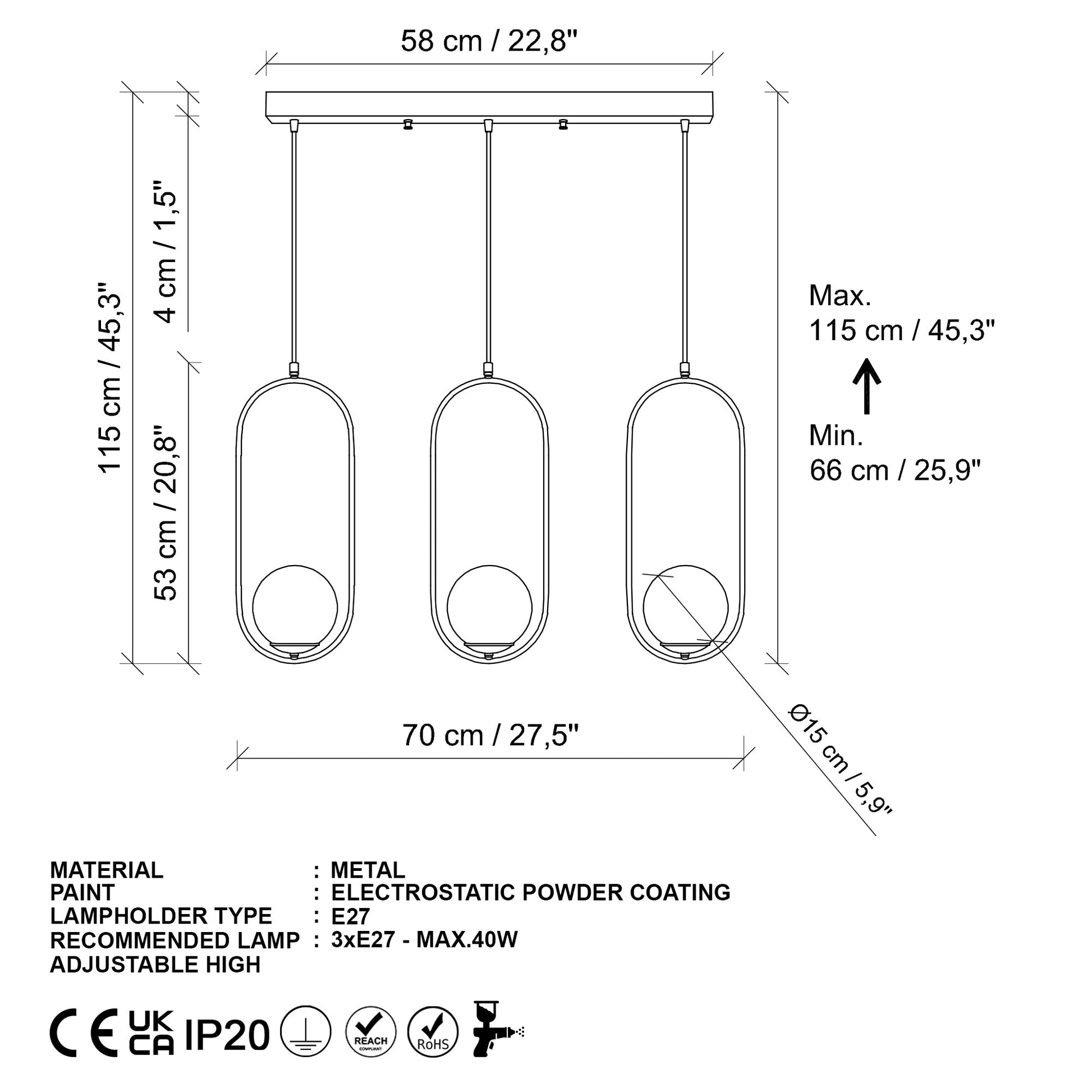 Com três casquilhos e27, este candeeiro proporciona uma iluminação ampla para iluminar qualquer divisão. Adicione as suas lâmpadas favoritas para criar um ambiente quente e convidativo que fará com que a sua casa se sinta confortável e acolhedora. Quer esteja a receber convidados ou a desfrutar de uma noite tranquila, este candeeiro irá criar o ambiente perfeito para qualquer ocasião.