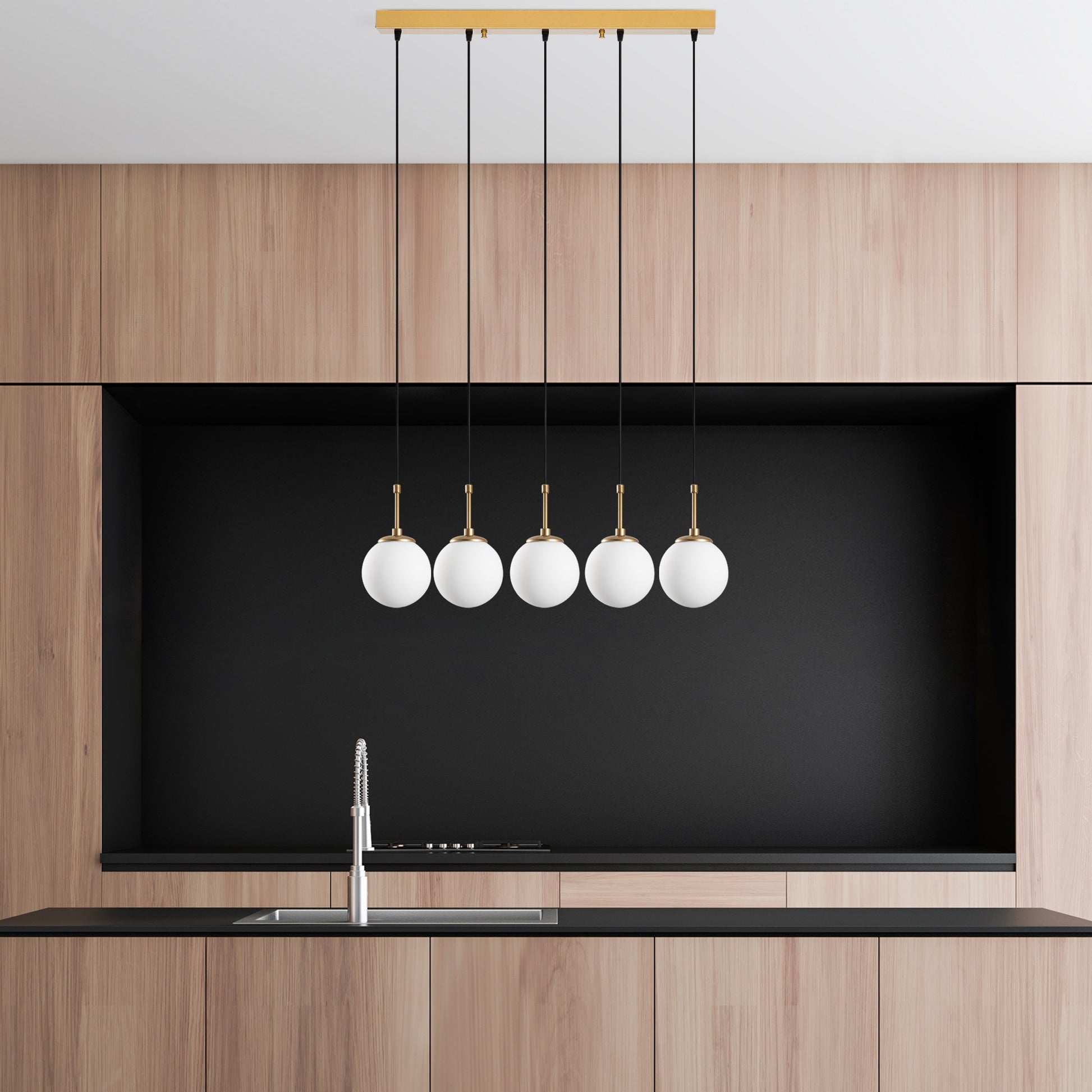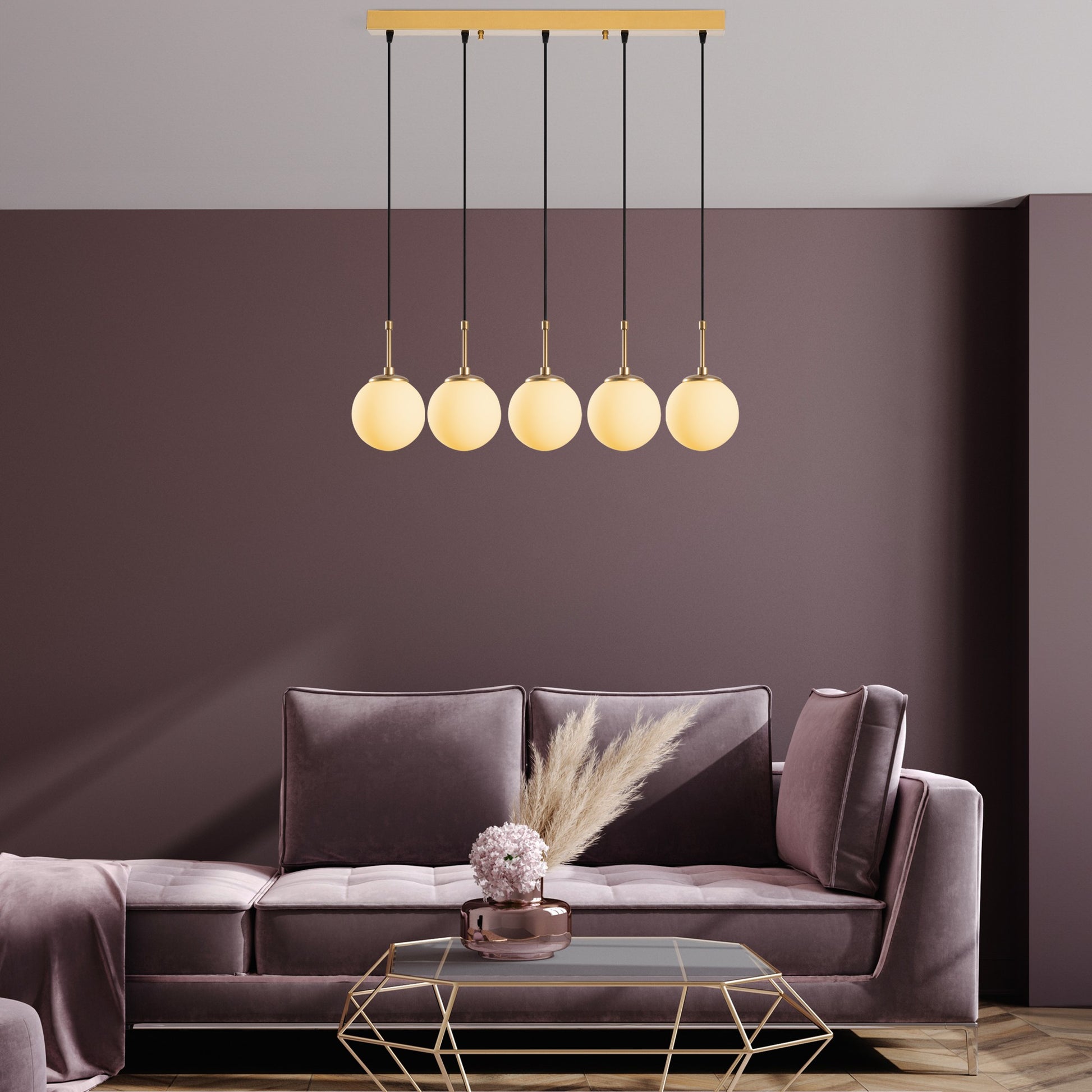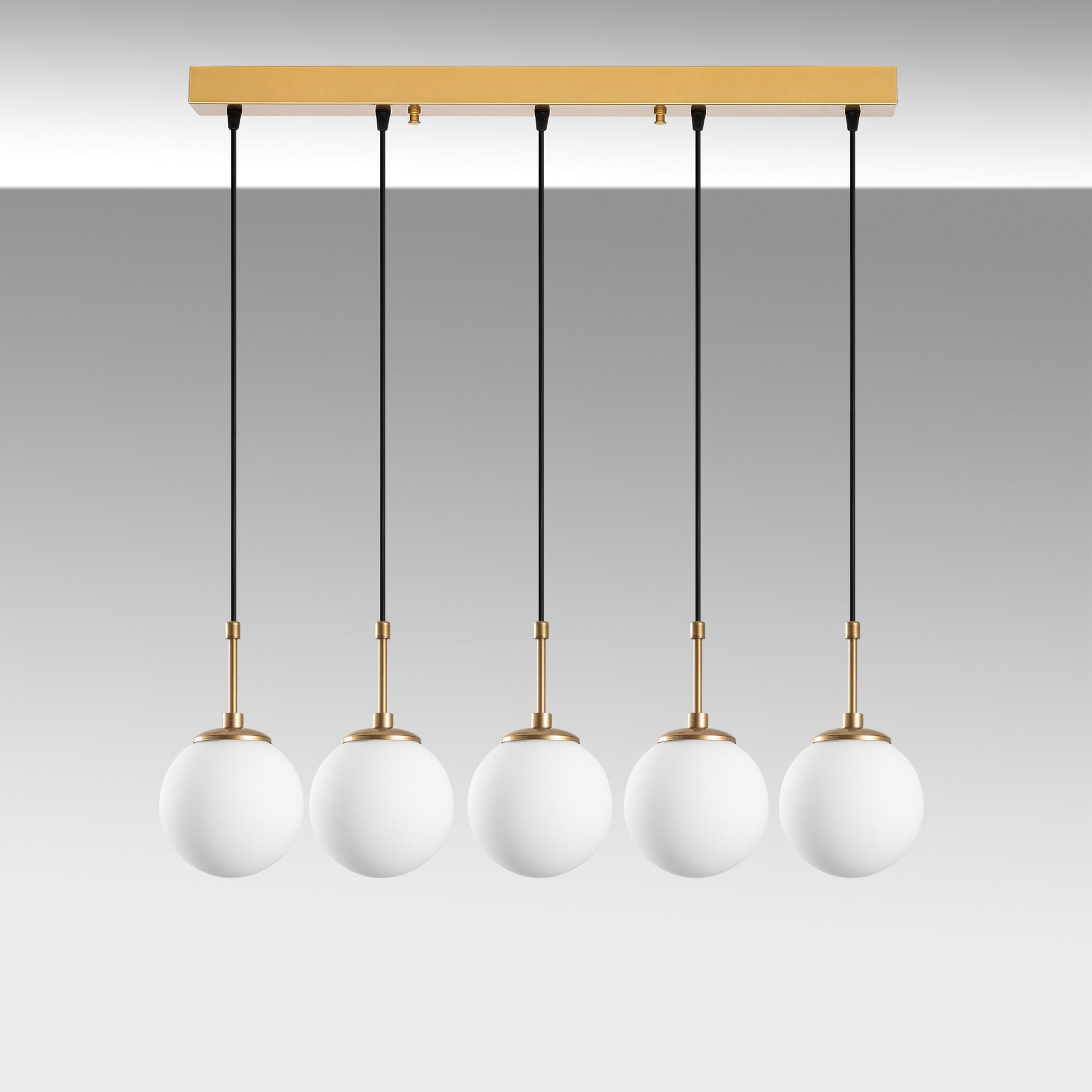 O corpo metálico deste candeeiro não só é resistente e duradouro, como também dá um toque de modernidade ao seu espaço. A caraterística de altura ajustável permite-lhe personalizar o aspeto para se adaptar perfeitamente ao seu espaço, enquanto a cor dourada acrescenta um toque de glamour e opulência.