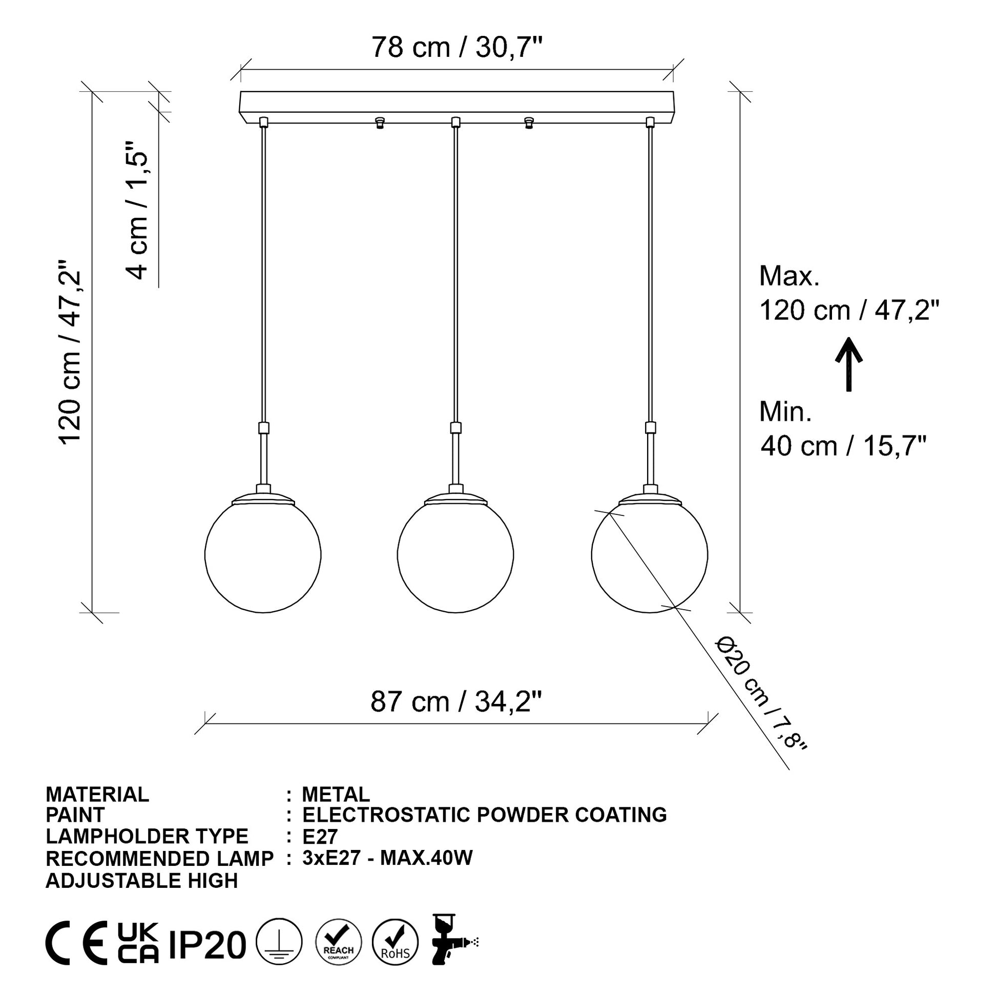- Tamanho da placa de base: 78 x 6 x 4 cm