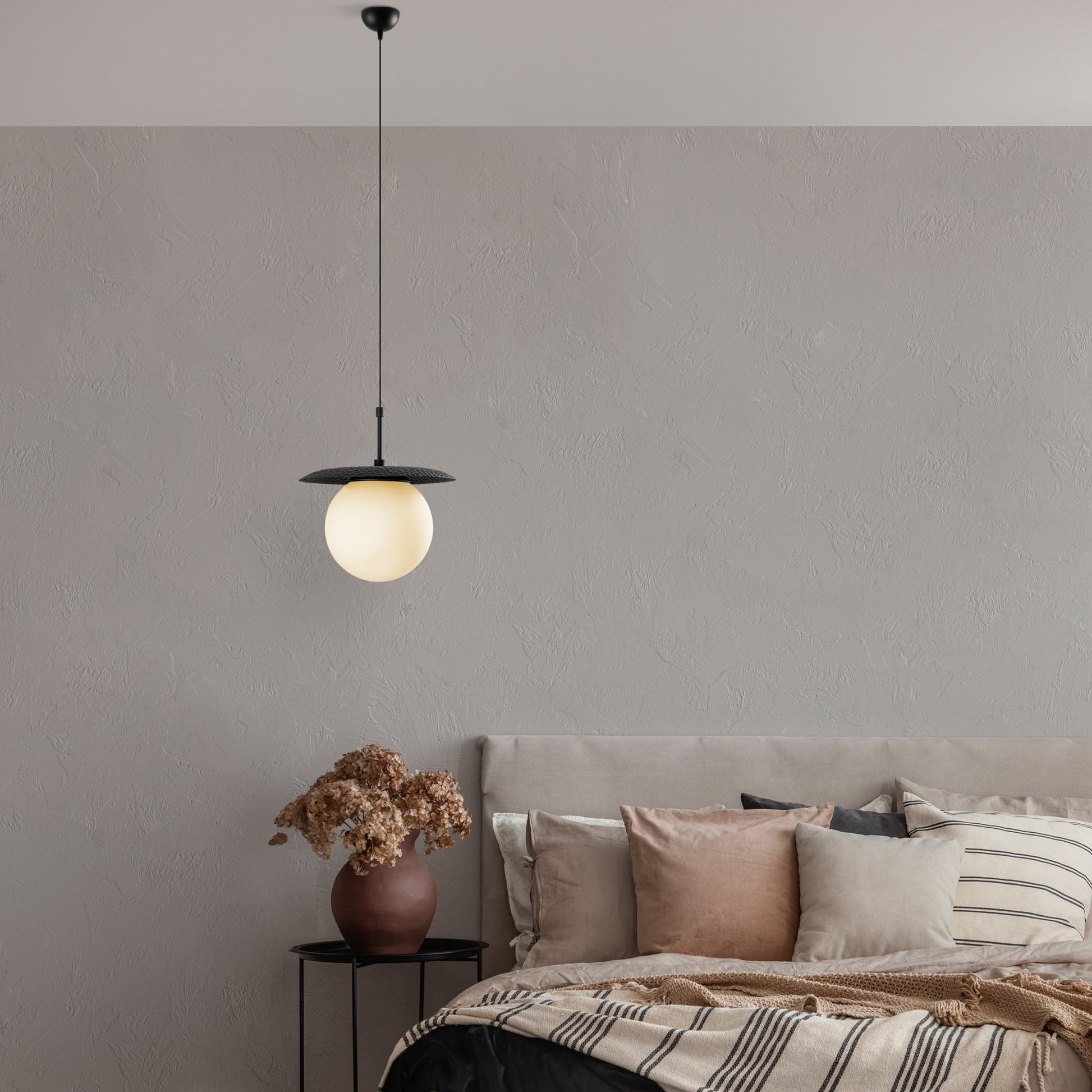 O candeeiro é fornecido com uma placa de base de ø10 h:6 cm e um comprimento de cabo de 90 cm, o que facilita a instalação em qualquer divisão. Basta pendurá-lo no teto e ajustar a altura a seu gosto para obter um aspeto personalizado que impressionará os seus convidados.
