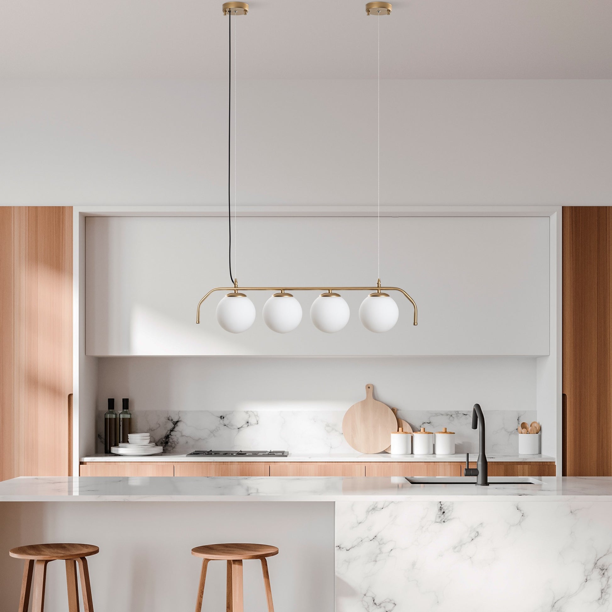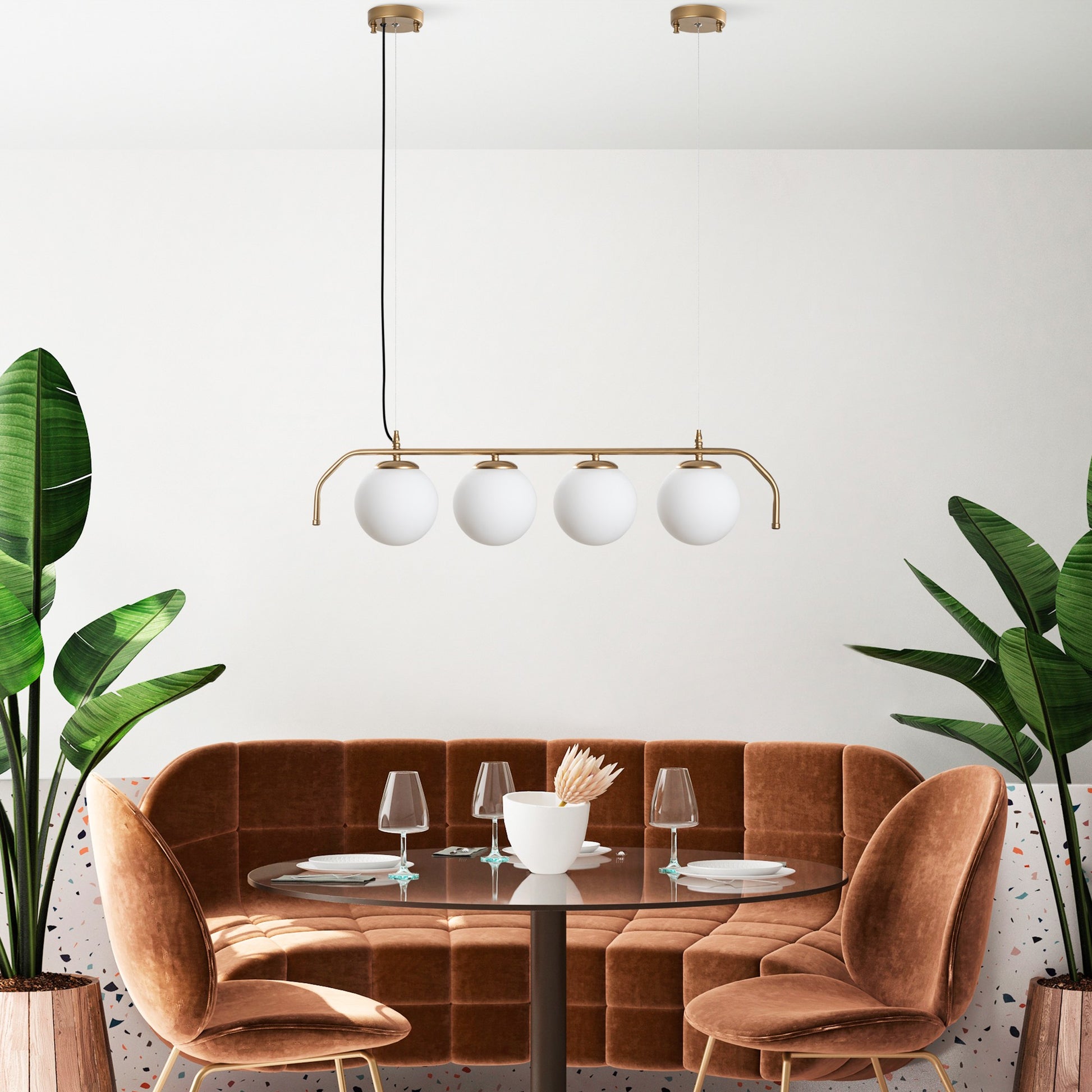 O corpo metálico deste candeeiro não só é resistente e duradouro, como também dá um toque moderno e luxuoso à sua casa. A altura ajustável permite-lhe personalizar o aspeto para se adaptar perfeitamente ao seu espaço, enquanto a cor dourada acrescenta um toque de glamour e opulência.