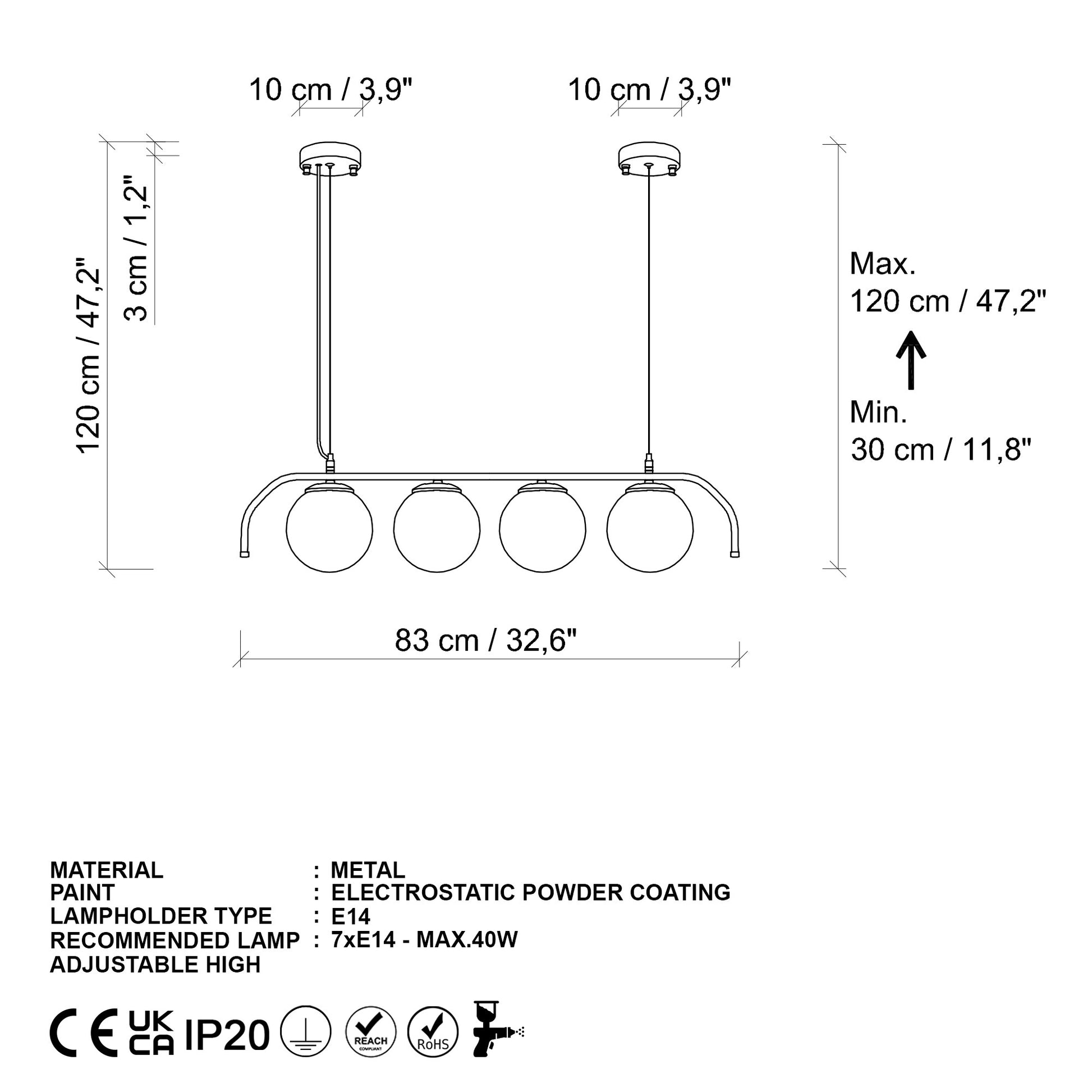 - Tipo de tomada: 4 x E 14 Max 40 W