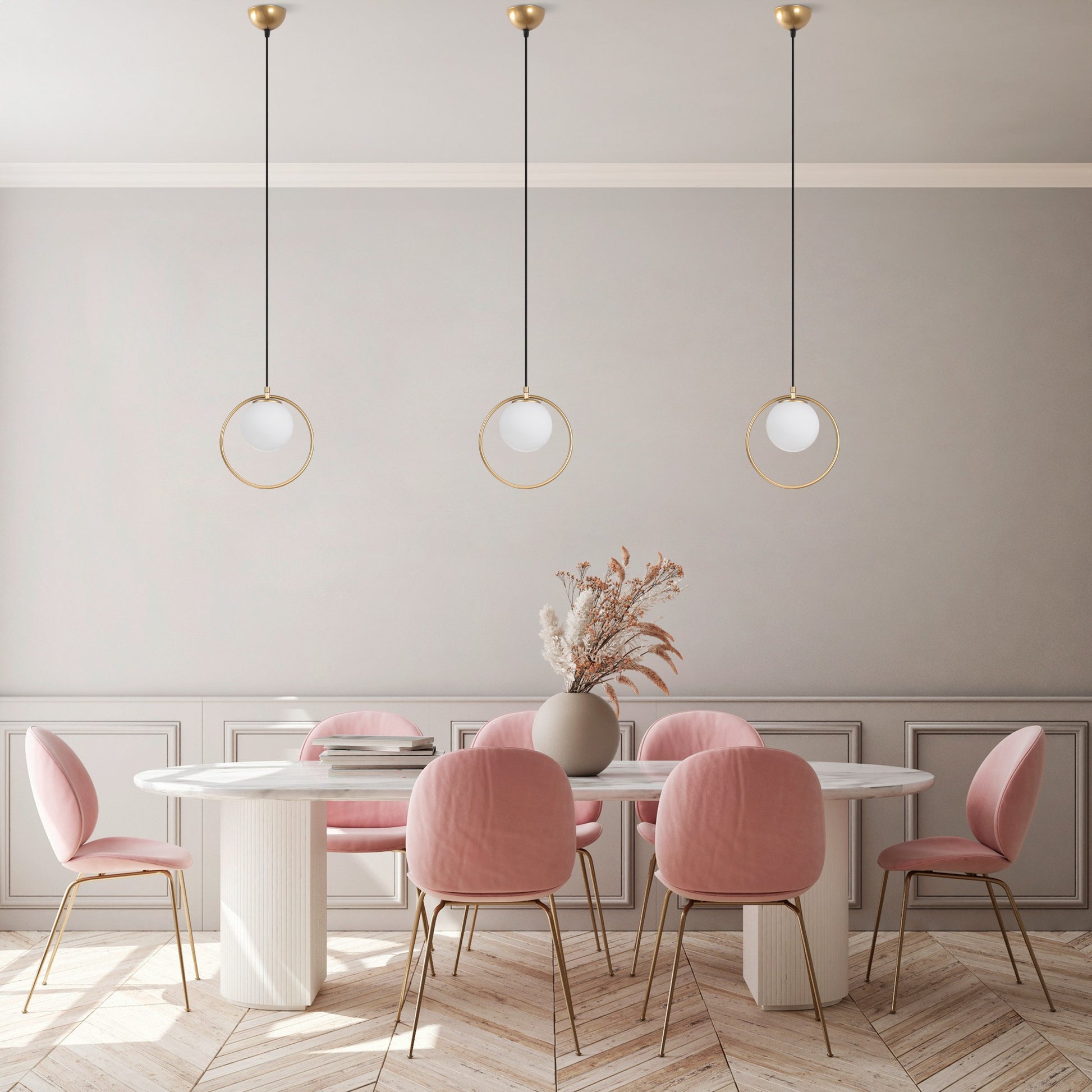 O corpo metálico e a tampa de vidro deste candeeiro fazem dele uma adição verdadeiramente luxuosa à sua casa. A altura ajustável permite-lhe personalizar o aspeto para se adaptar perfeitamente ao seu espaço, enquanto a cor dourada acrescenta um toque de glamour que elevará instantaneamente a decoração da sua casa.