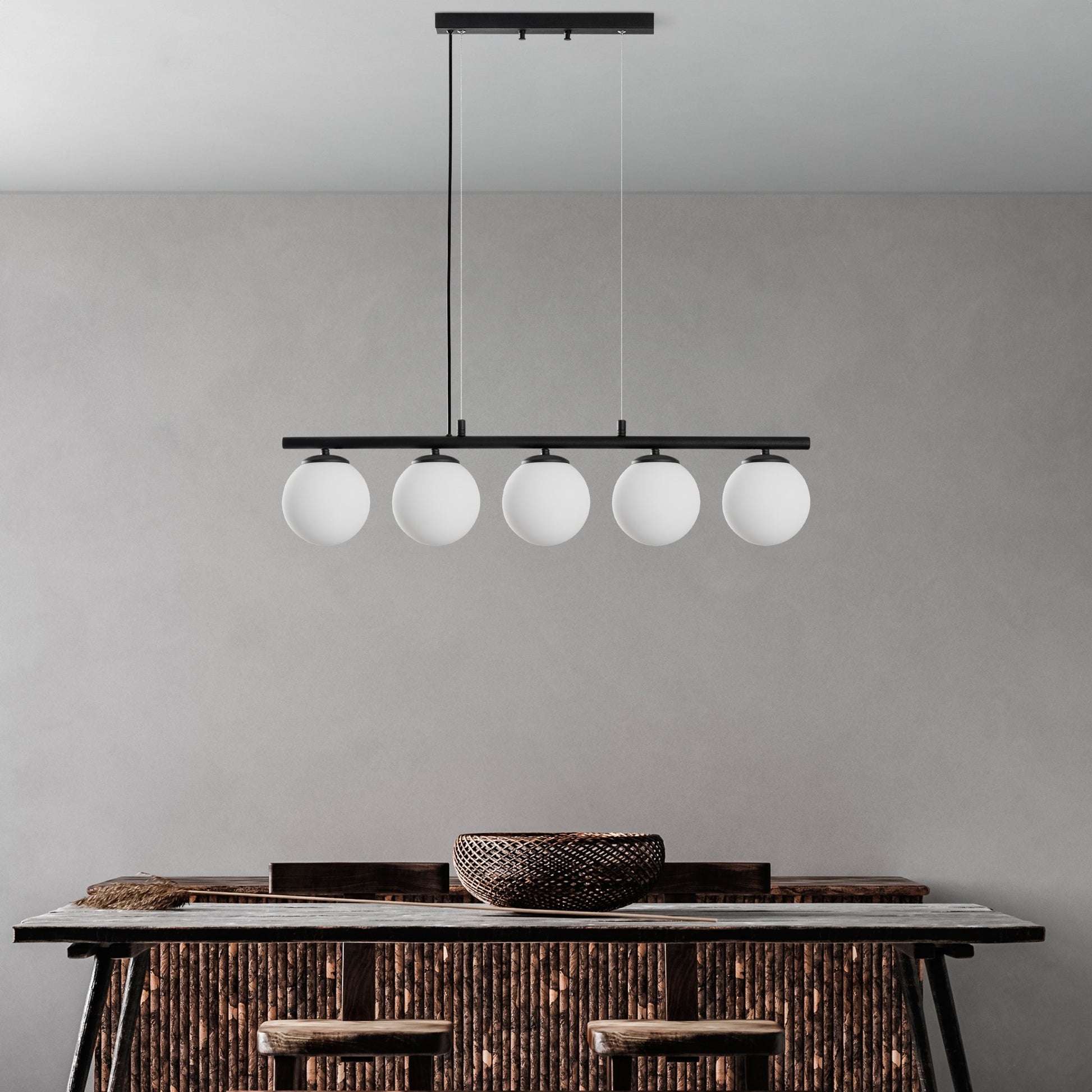 O design elegante e a cor preta deste candeeiro fazem dele um complemento versátil para qualquer estilo de decoração, quer prefira moderno, tradicional ou eclético. A sua altura ajustável permite-lhe personalizar o aspeto para se adaptar perfeitamente ao seu espaço, enquanto o corpo metálico garante durabilidade e beleza duradoura.