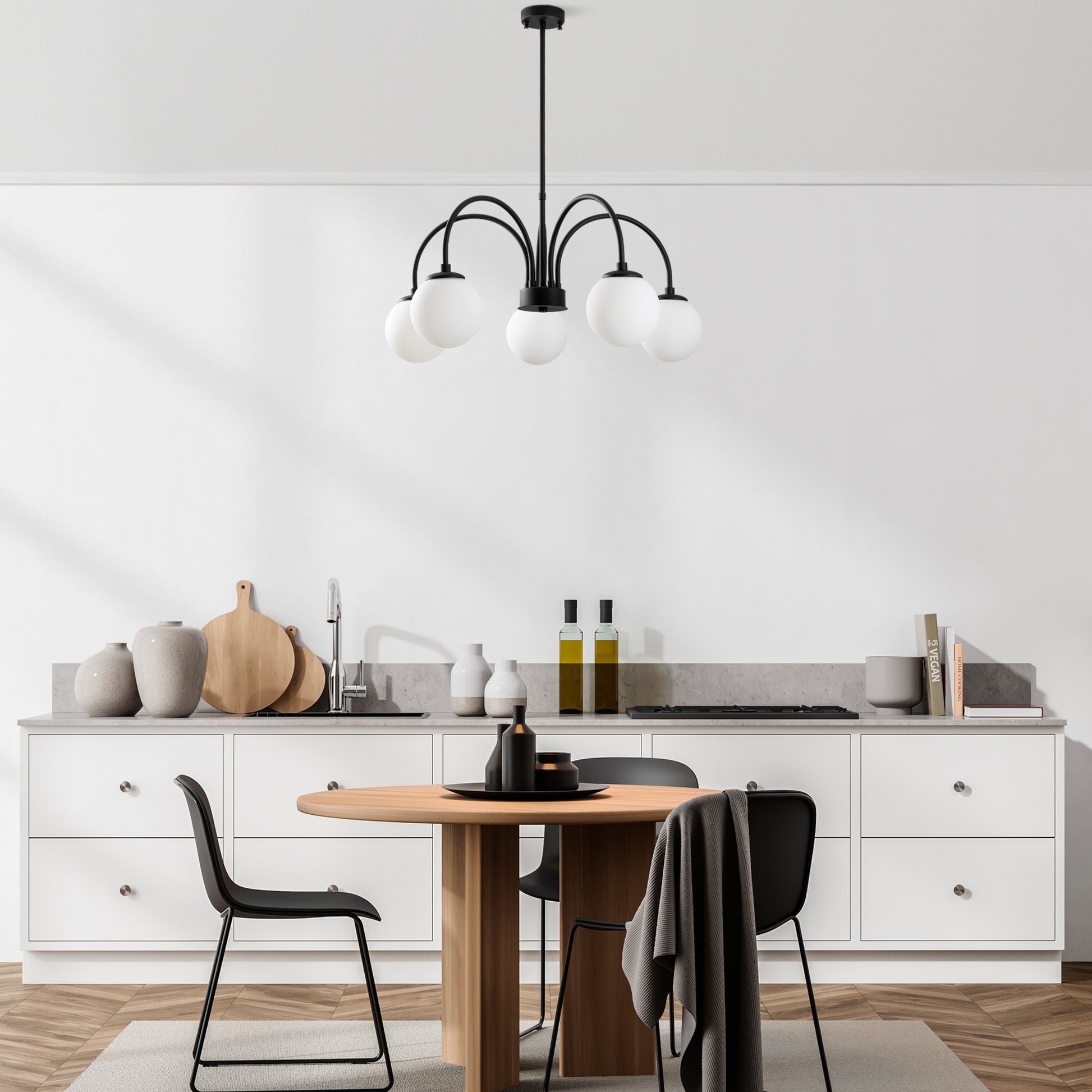 O candeeiro apresenta um corpo metálico elegante com uma tampa de vidro, dando-lhe um aspeto moderno e luxuoso que irá realçar a decoração da sua casa. A cor preta acrescenta um toque de drama e estilo, tornando-o uma peça de destaque em qualquer divisão.