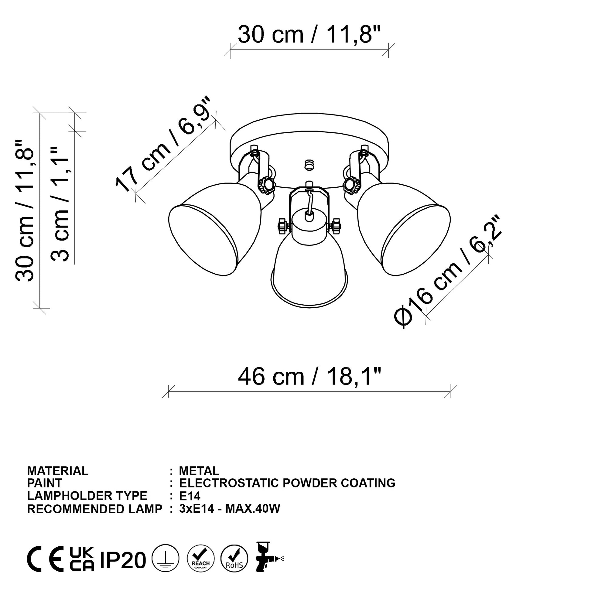 - Tipo de tomada: 3 x E 14 Max 40 W