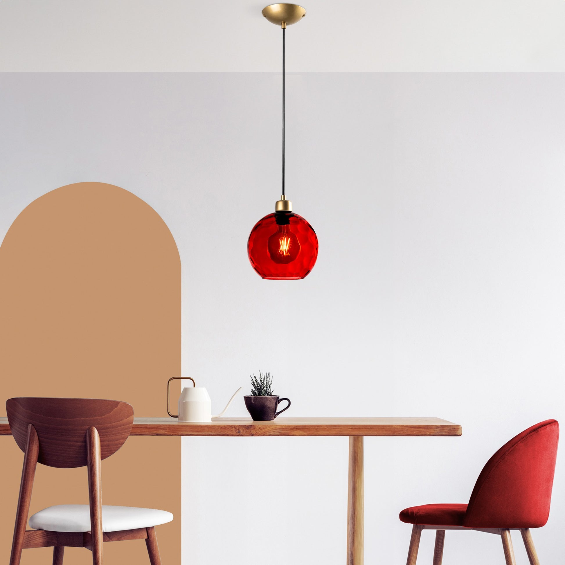 Transforme o seu espaço de vida com o nosso deslumbrante candeeiro de metal vermelho! Esta peça requintada dará um toque de elegância e sofisticação a qualquer divisão, criando uma atmosfera calorosa e convidativa que você e os seus convidados irão adorar.