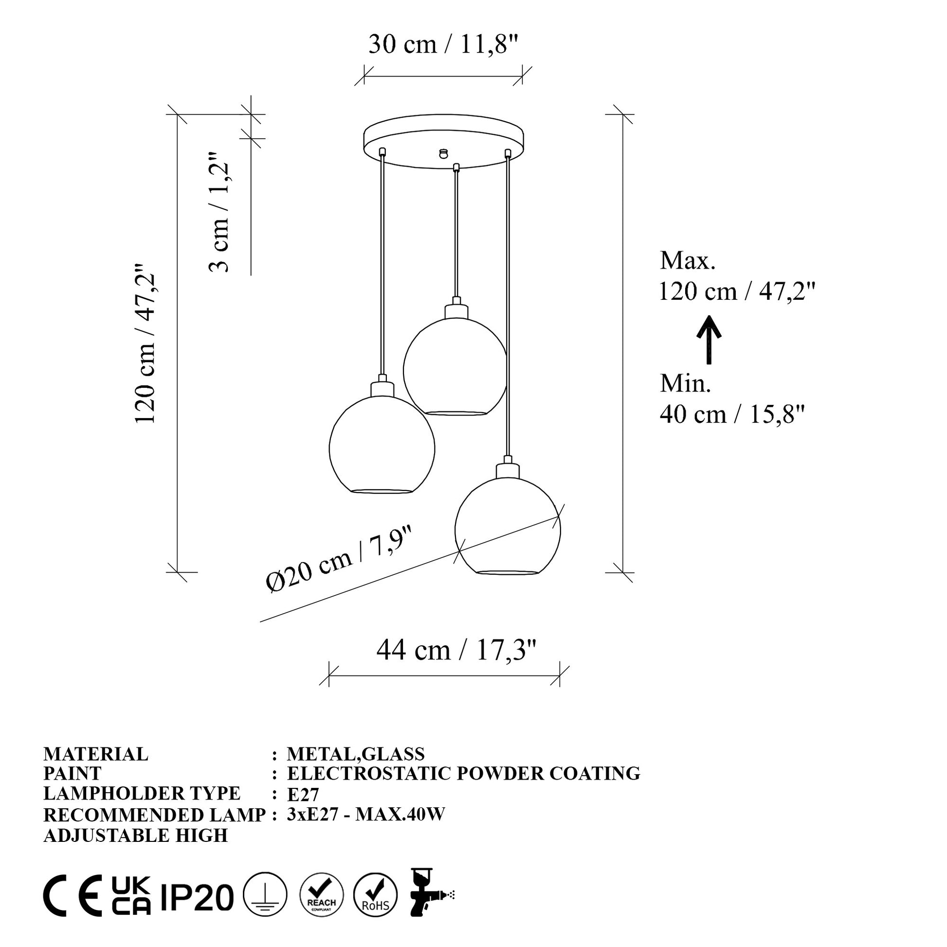 - Tipo de tomada: 3 x E 27 Max 40 W