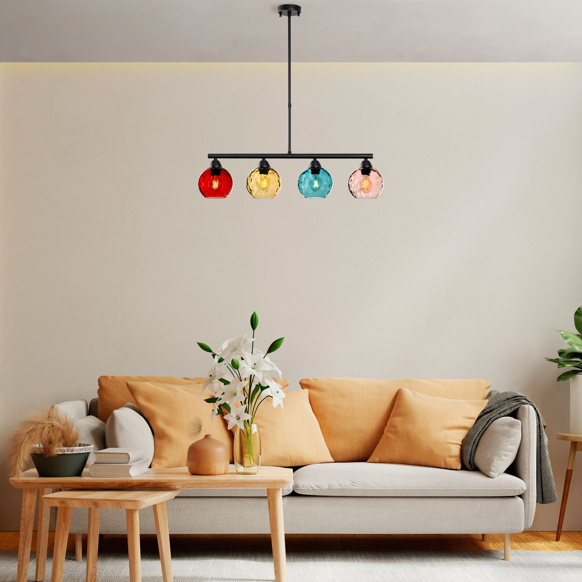 Transforme seu espaço de vida em um deslumbrante oásis com nosso impressionante Lustre Multicolorido e Preto. Esta peça requintada apresenta um corpo de metal elegante e uma delicada cúpula de vidro que irradia elegância e sofisticação.