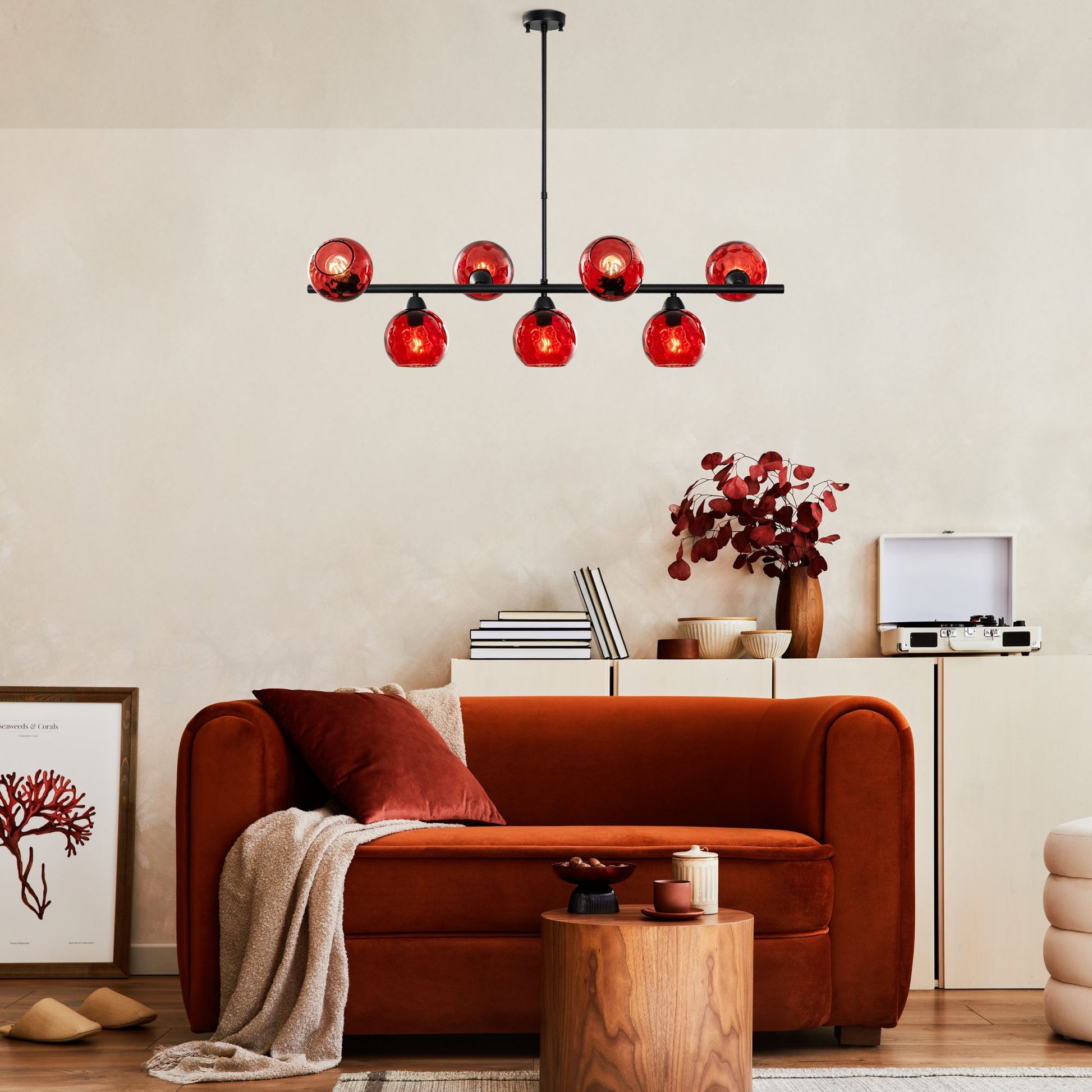 Transforme seu espaço de vida com nosso deslumbrante Lustre Vermelho e Preto. Esta peça requintada adicionará um toque de elegância e sofisticação a qualquer ambiente, criando uma atmosfera acolhedora e convidativa que você e seus convidados adorarão. O corpo de metal e a cúpula de vidro se combinam para criar um design bonito e único que será o ponto focal da sua decoração.
