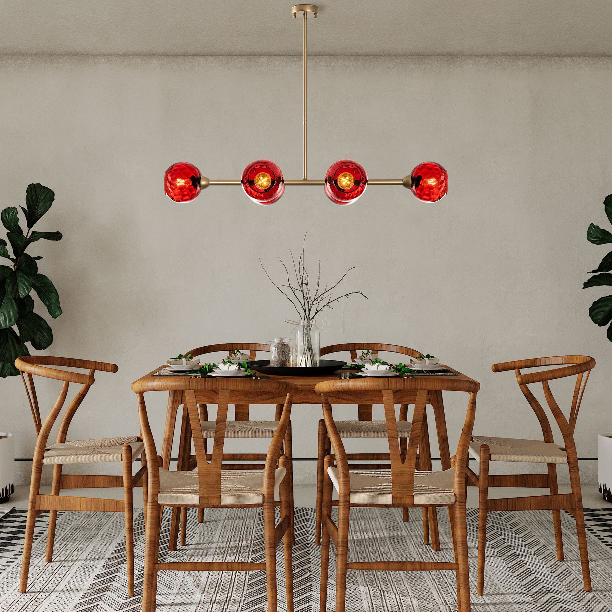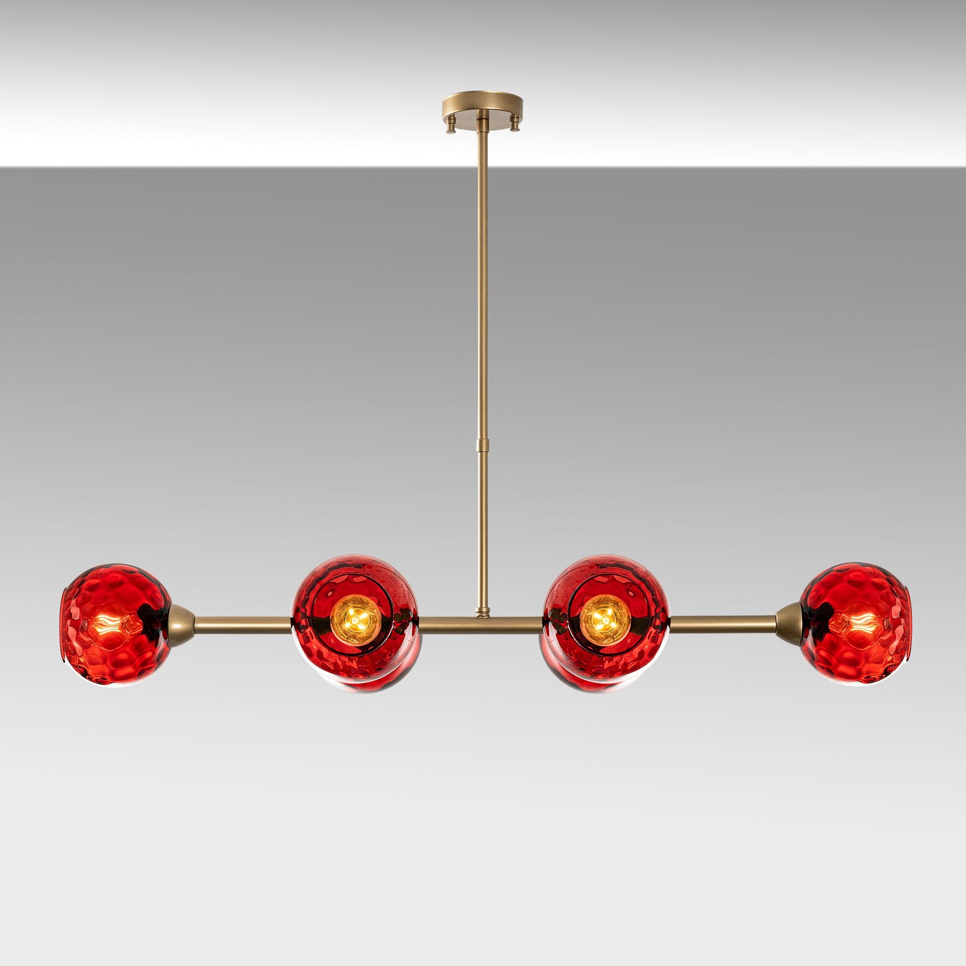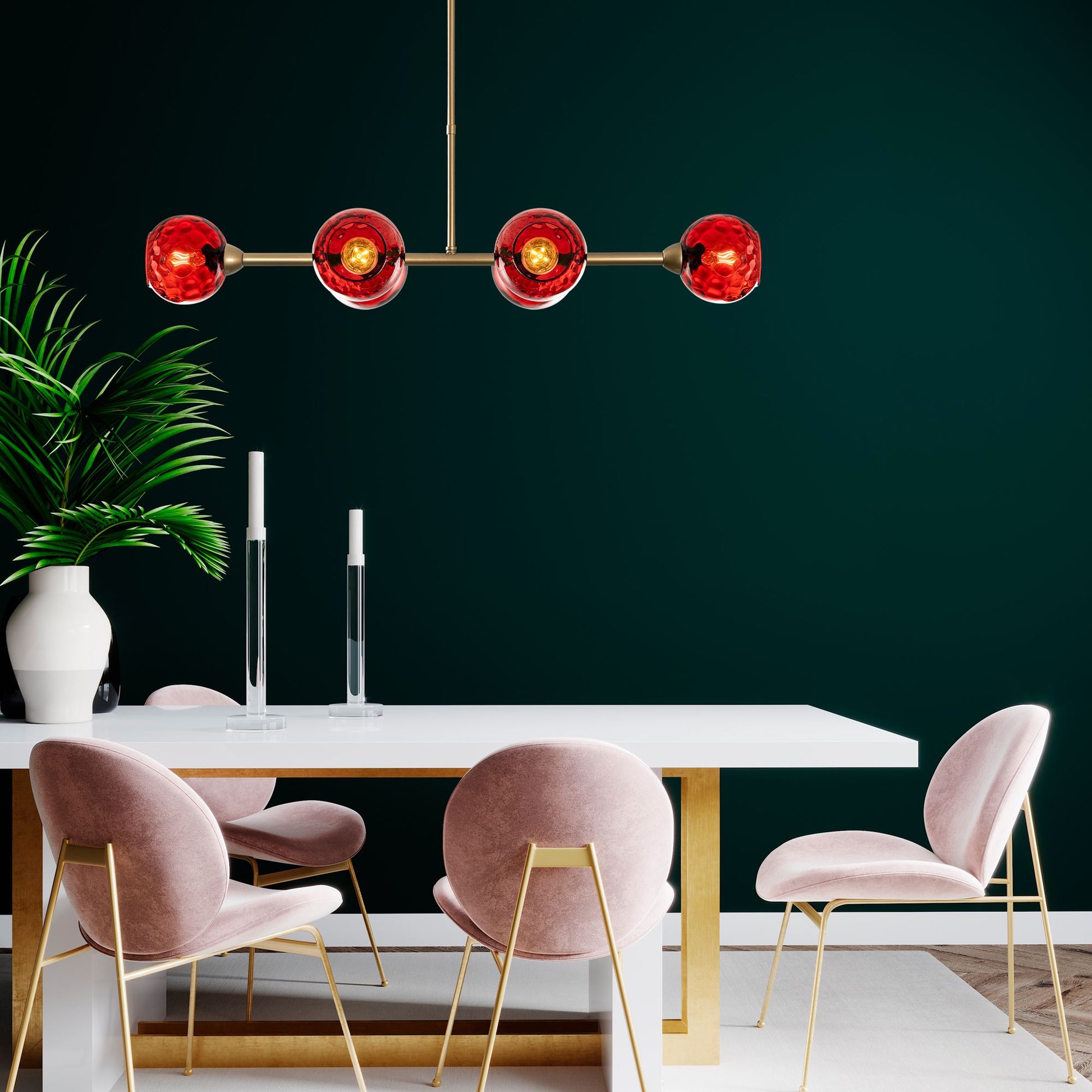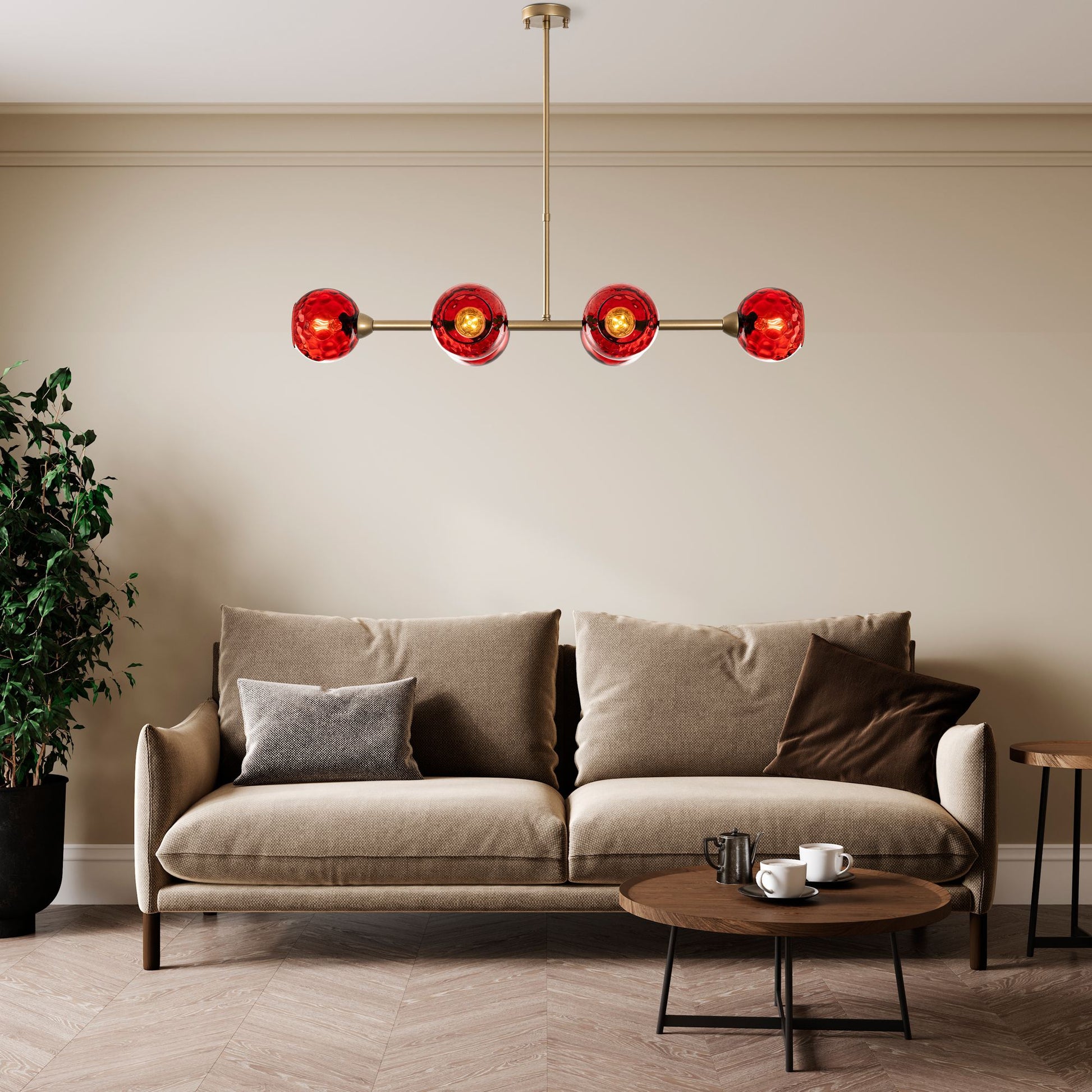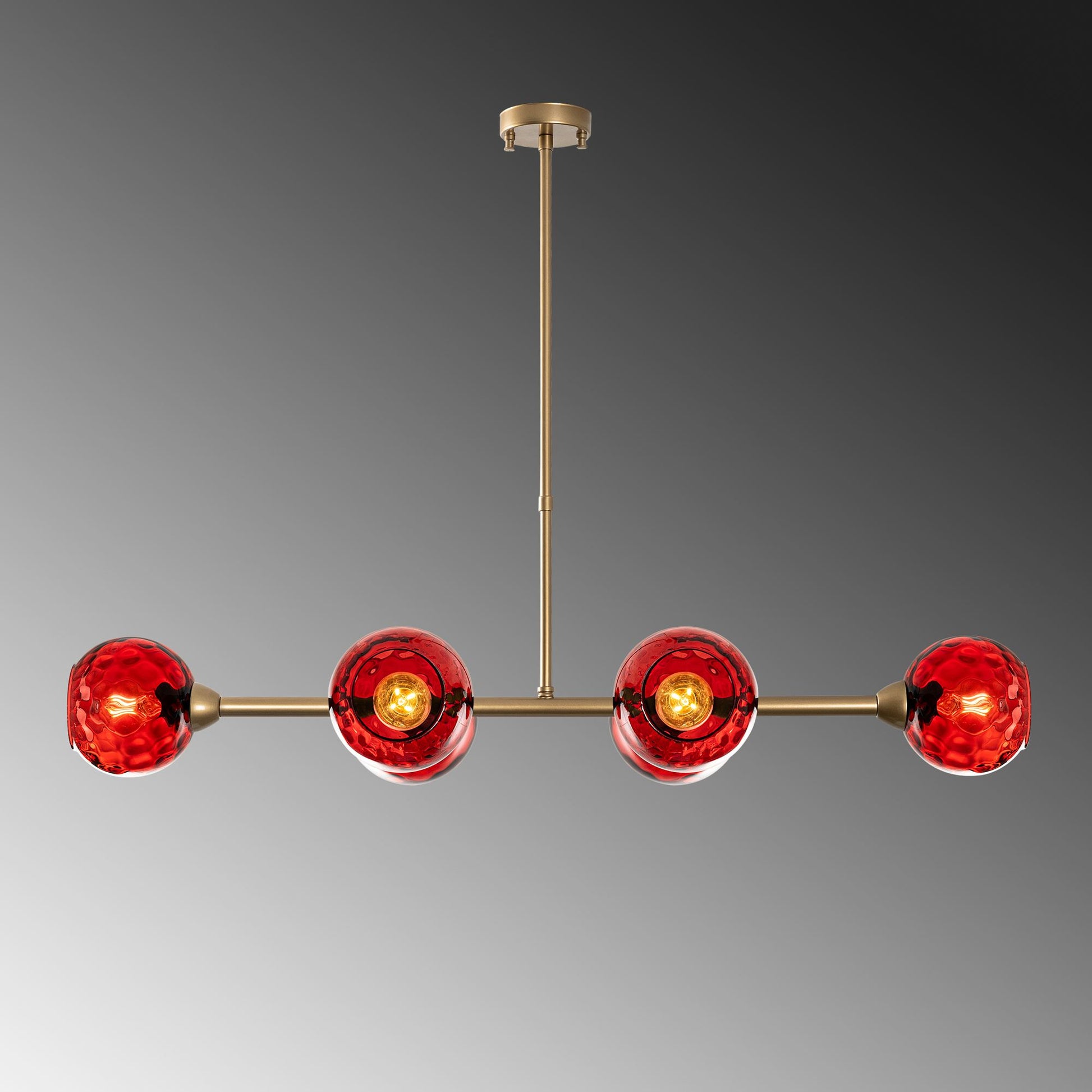 Transforme seu espaço de vida em um refúgio luxuoso com nosso requintado Lustre Vermelho e Dourado. O corpo de metal intricado e a elegante cúpula de vidro se combinam para criar um deslumbrante ponto focal que cativará todos que entrarem em sua casa.