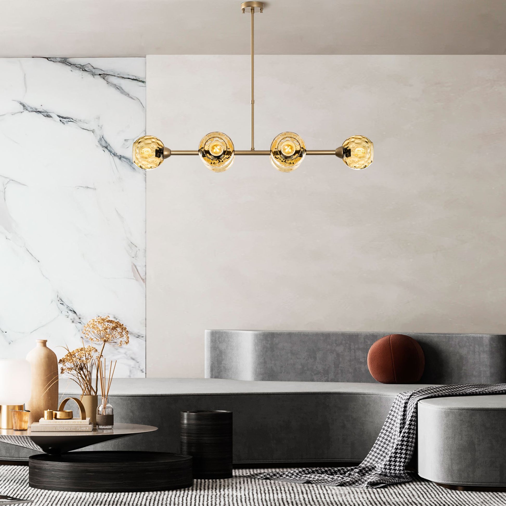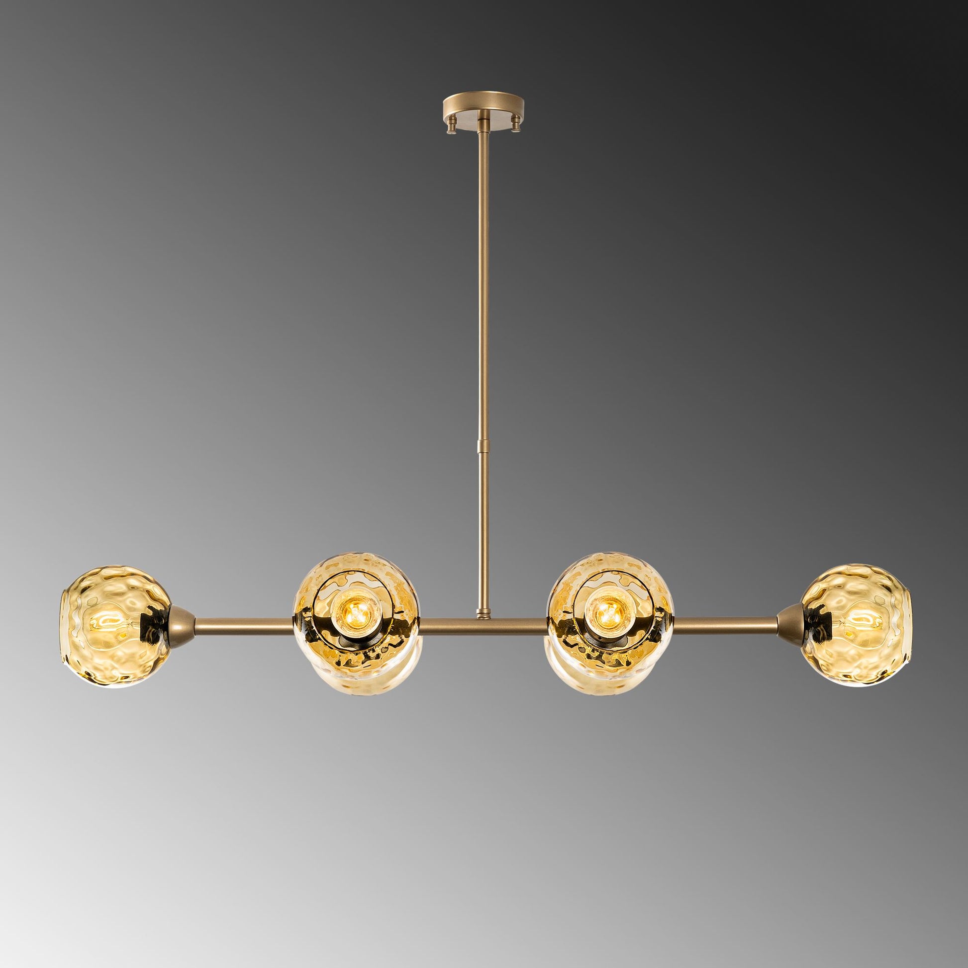 Crie uma atmosfera acolhedora e convidativa com o suave brilho deste lindo lustre. Seja para um jantar ou simplesmente para relaxar em casa, esta peça marcante será a adição perfeita à sua decoração. Deixe a luz dançar sobre os detalhes amarelos e dourados para um efeito verdadeiramente hipnotizante.