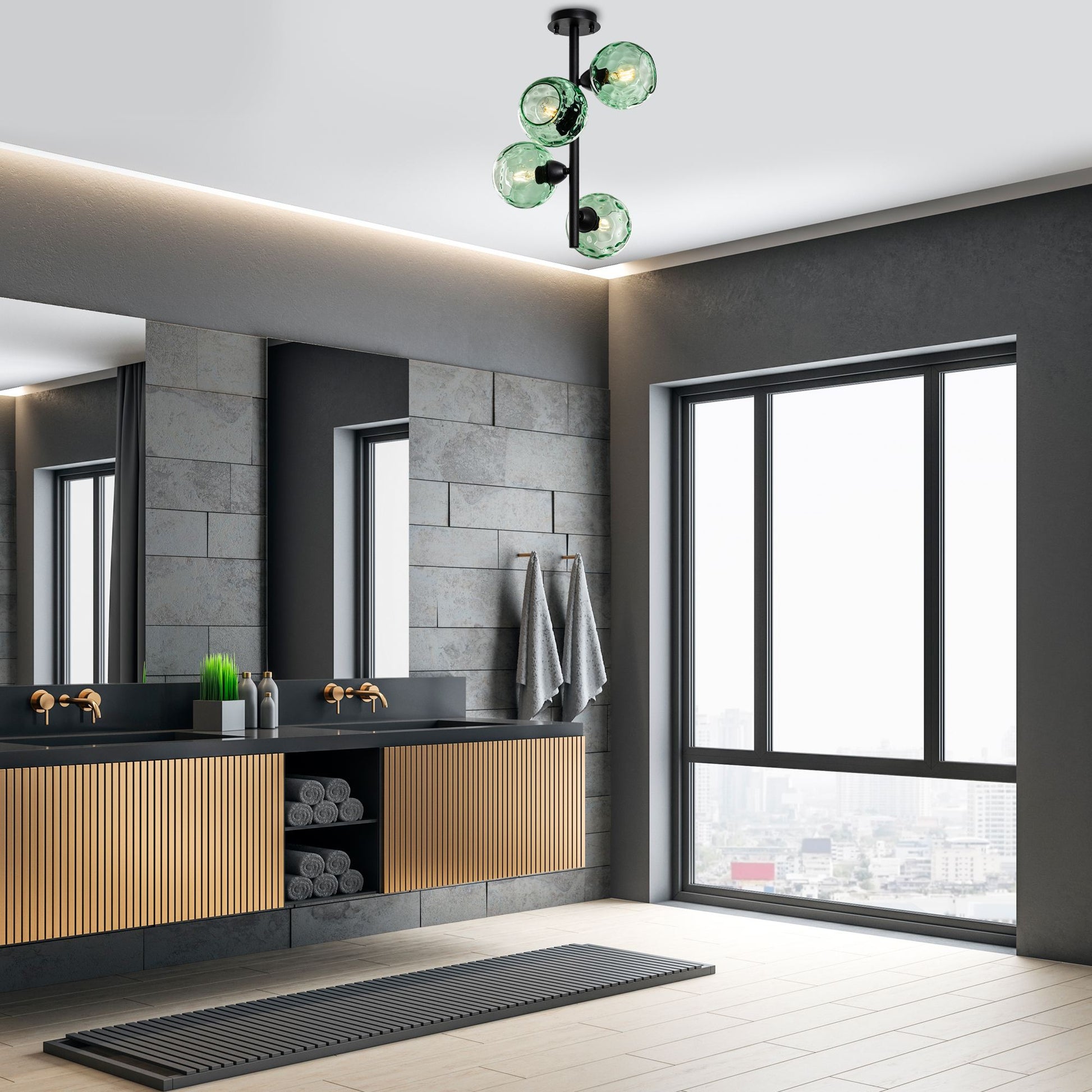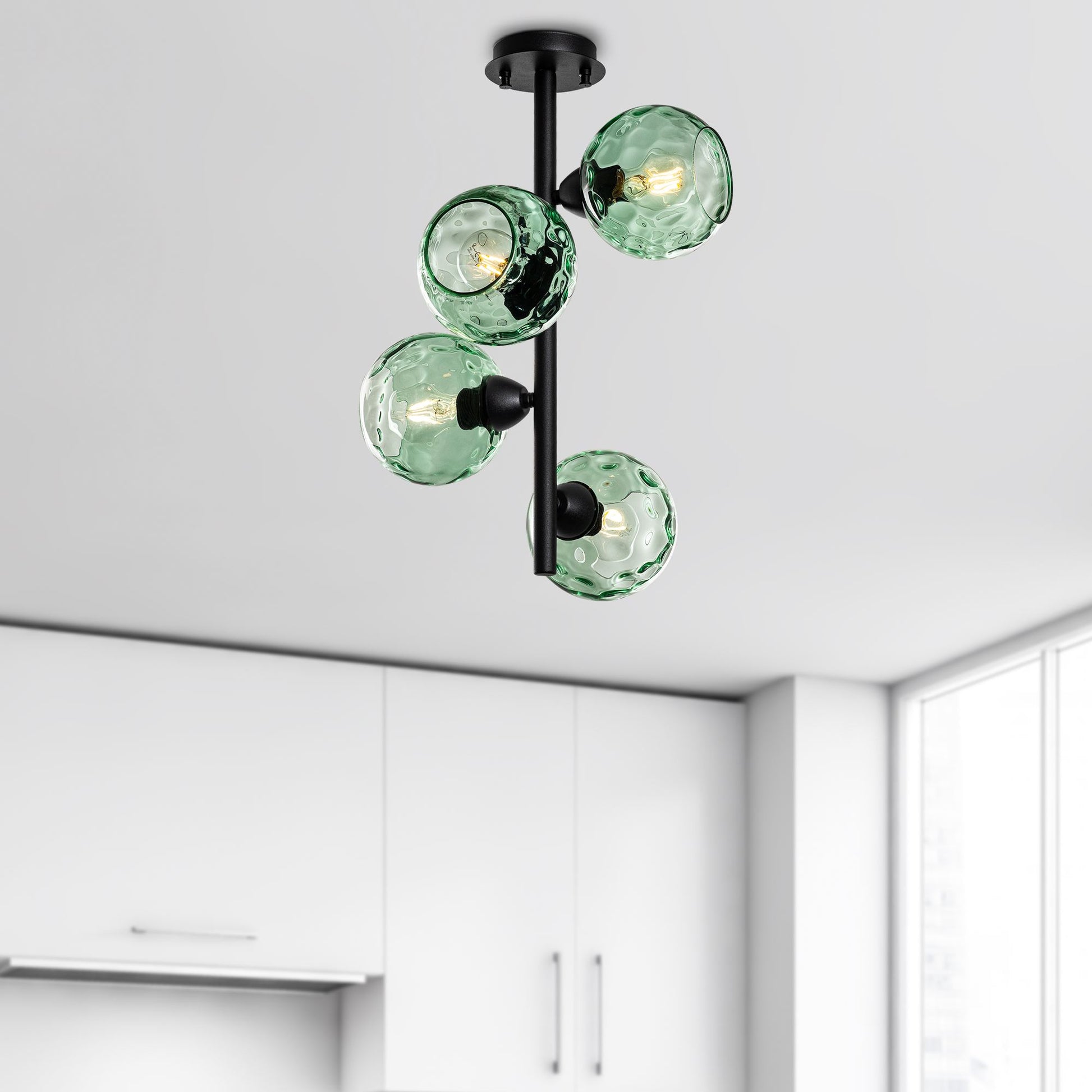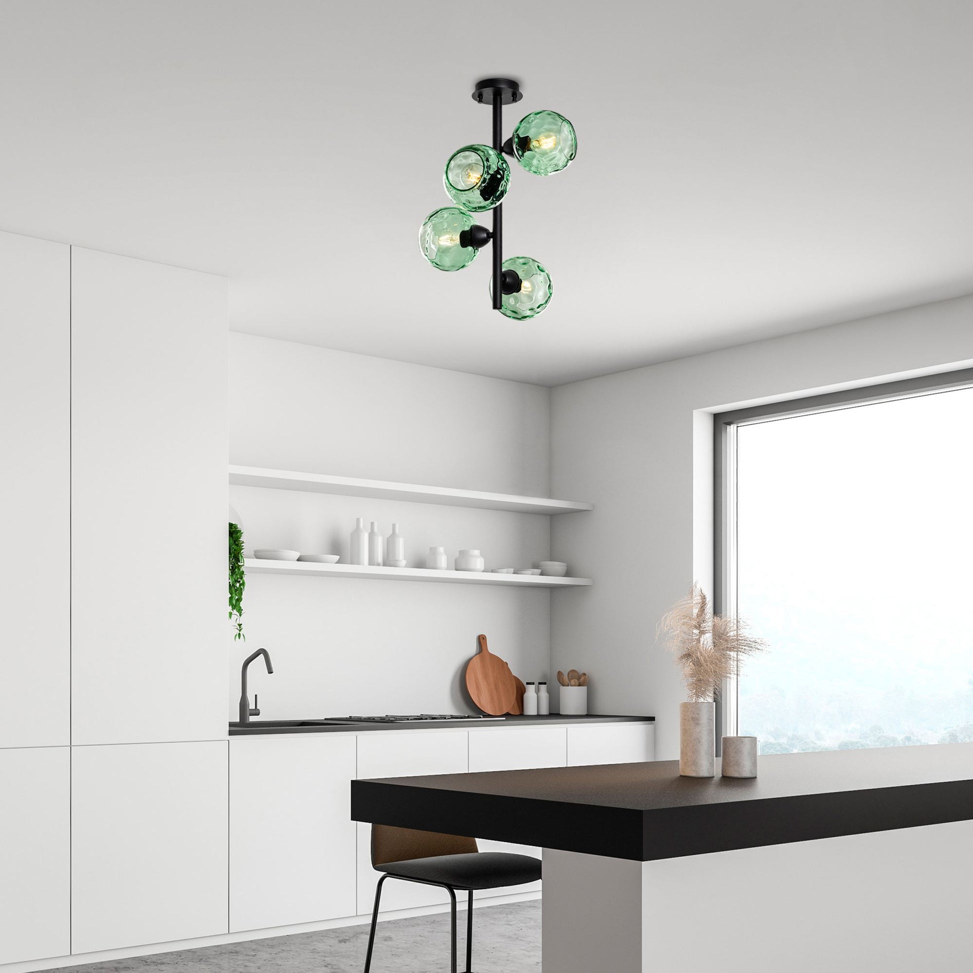 O corpo de metal elegante e a cúpula de vidro deste lustre fazem dele um ponto focal deslumbrante em qualquer cômodo. A combinação de cores verde-menta e preto adiciona um toque moderno e chique à sua decoração, enquanto o tamanho e o design o tornam perfeito para pendurar sobre uma mesa de jantar ou em uma sala de estar.