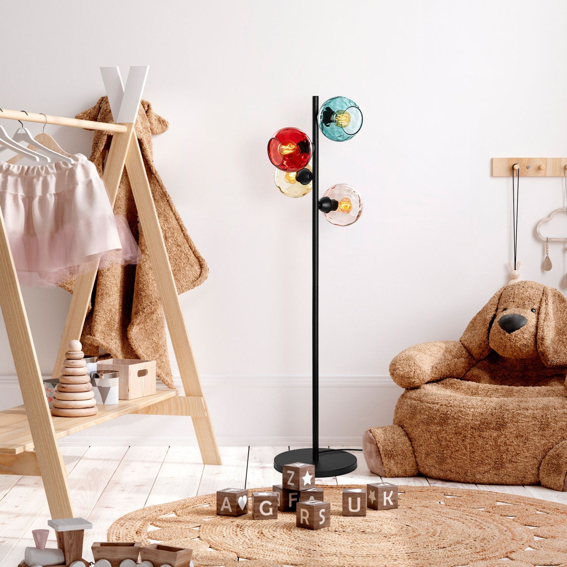 Faça uma declaração na sua sala de estar, quarto ou escritório com este abajur de chão chamativo. Seu design moderno e a combinação única de cores multicoloridas e preto complementarão sem esforço qualquer estilo de interior, do contemporâneo ao tradicional.