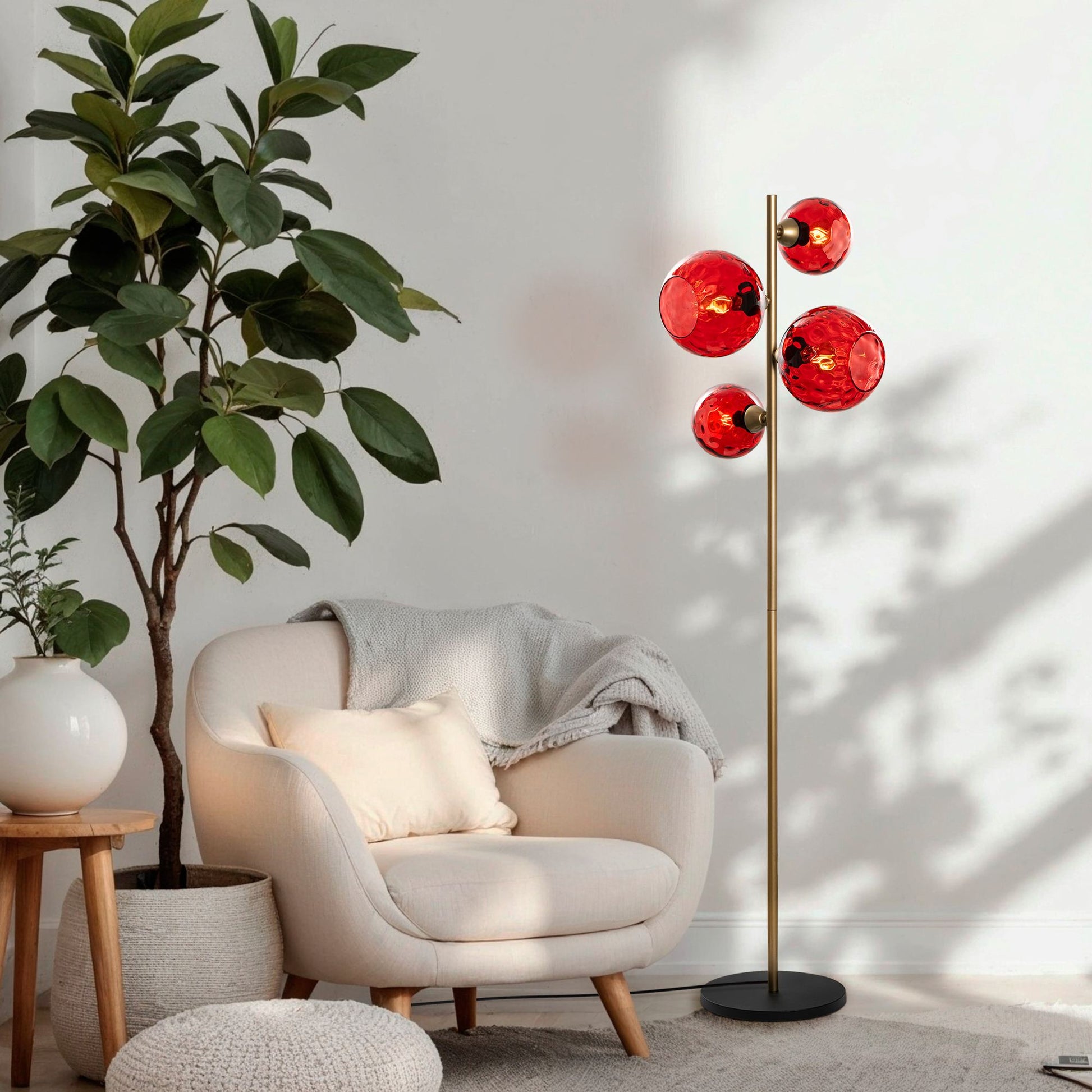 Candeeiro de Pé-Benek-Vermelho Dourado