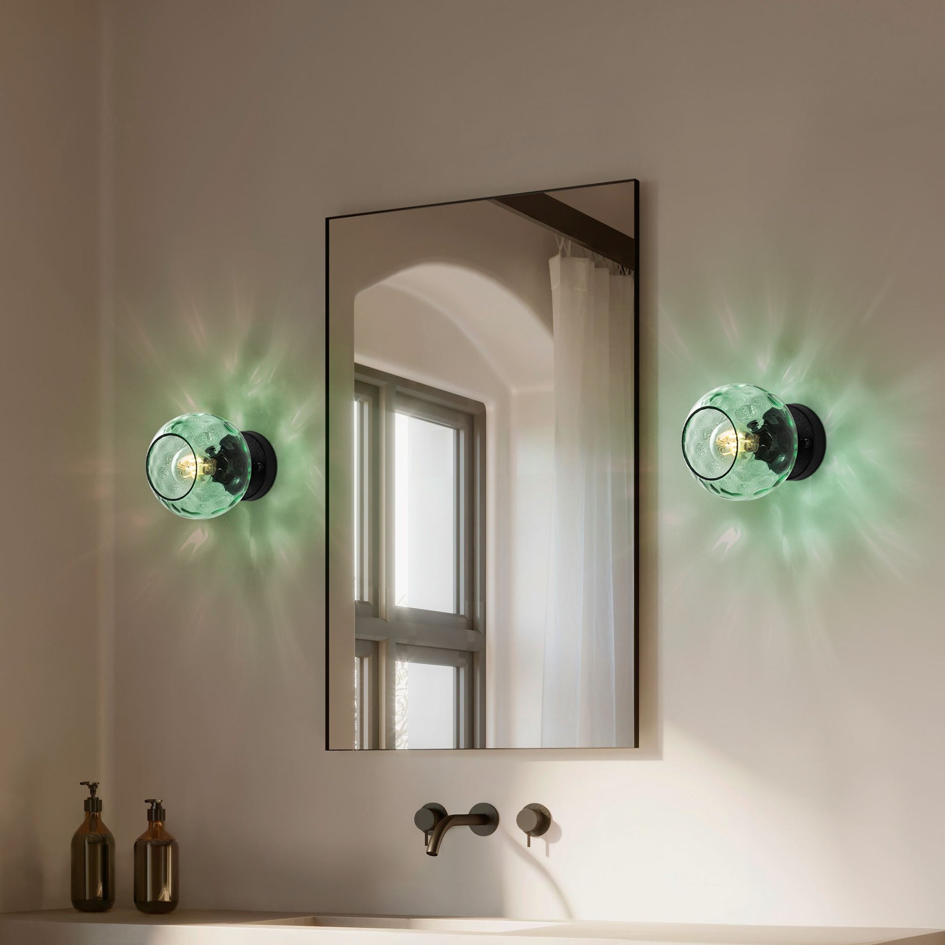 Ilumine seu espaço com a deslumbrante Luminária de Parede Verde Menta e Preta. Esta peça elegante apresenta um corpo de metal elegante e uma delicada cúpula de vidro, criando uma atmosfera acolhedora e convidativa em qualquer ambiente. A combinação perfeita de estilo e funcionalidade, esta luminária de parede adicionará um toque de sofisticação à sua decoração.