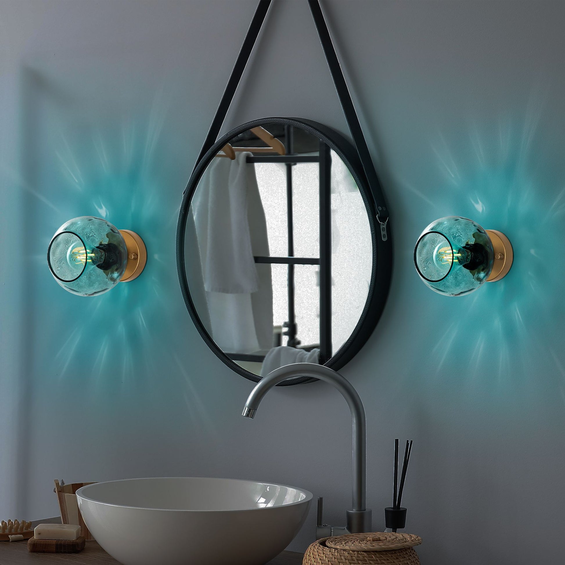 Ilumine seu espaço com a deslumbrante beleza de nosso Luminária de Parede Azul e Dourada. Esta peça requintada apresenta um corpo de metal elegante e uma delicada cúpula de vidro, criando um brilho quente e acolhedor em qualquer ambiente. O design elegante adiciona um toque de sofisticação à sua decoração, tornando-a a adição perfeita para sua casa.