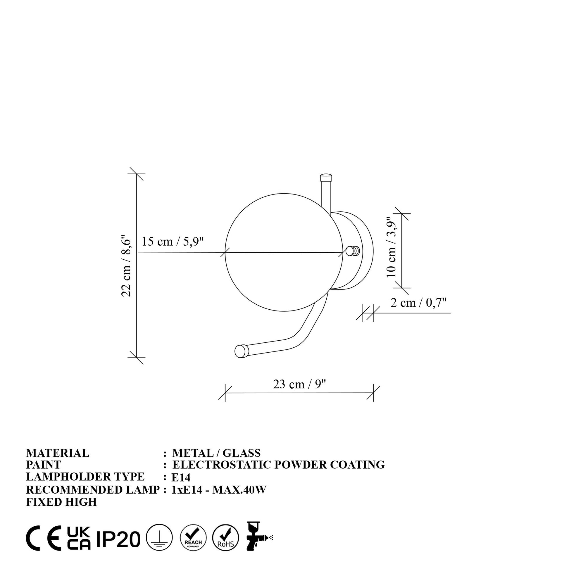 Ilumine seu espaço com elegância e estilo com nossa deslumbrante Lâmpada de Parede. O corpo metálico elegante combinado com a delicada cúpula de vidro cria um apelo visual hipnotizante que instantaneamente elevará qualquer ambiente. Se você está procurando adicionar um toque de sofisticação à sua sala de estar ou criar uma atmosfera aconchegante em seu quarto, esta lâmpada de parede é a escolha perfeita.