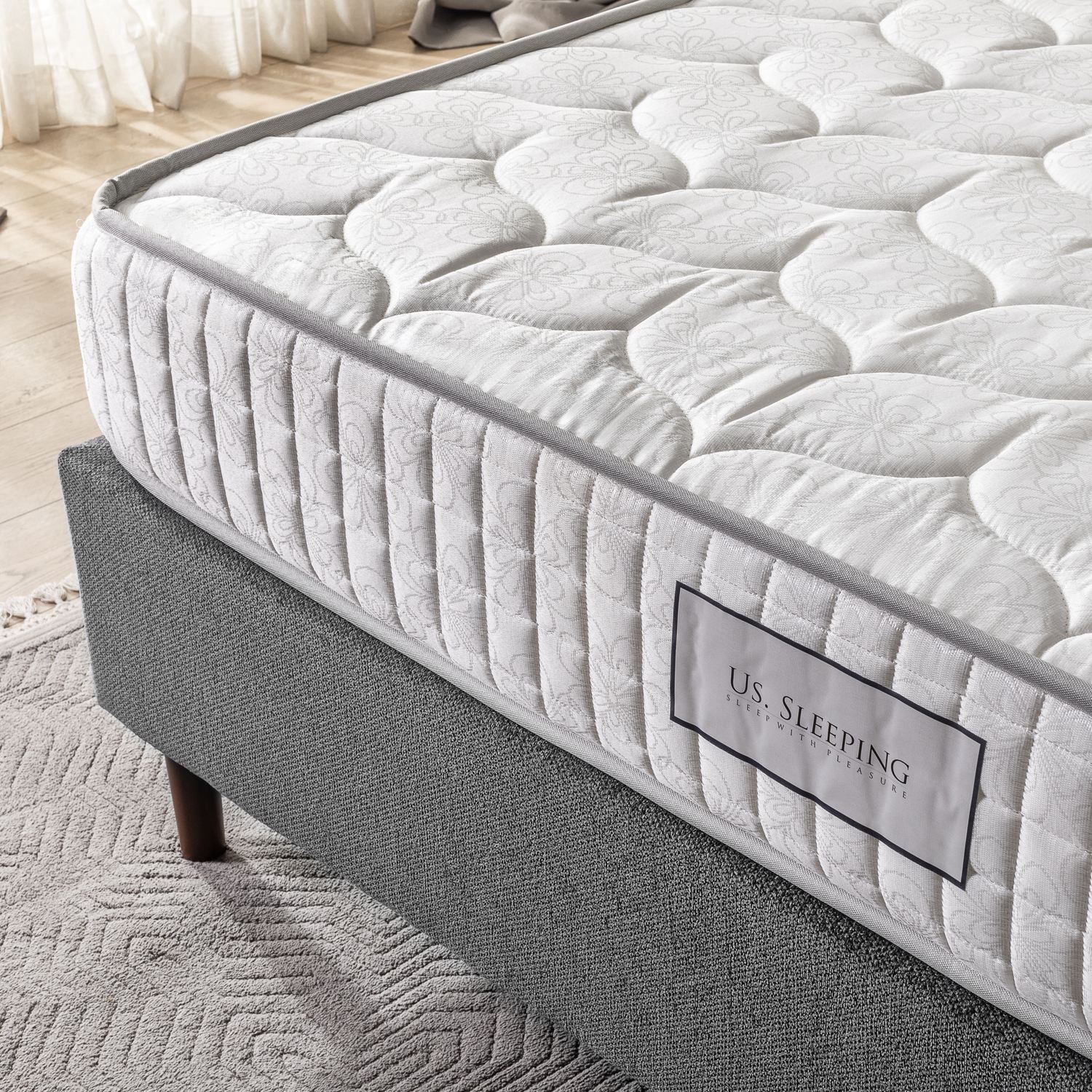 Experimente o conforto e suporte máximos com nosso luxuoso colchão de 12 camadas. A capa de tecido jacquard tecido adiciona um toque de elegância ao seu quarto, enquanto proporciona uma superfície macia e suave para descansar.