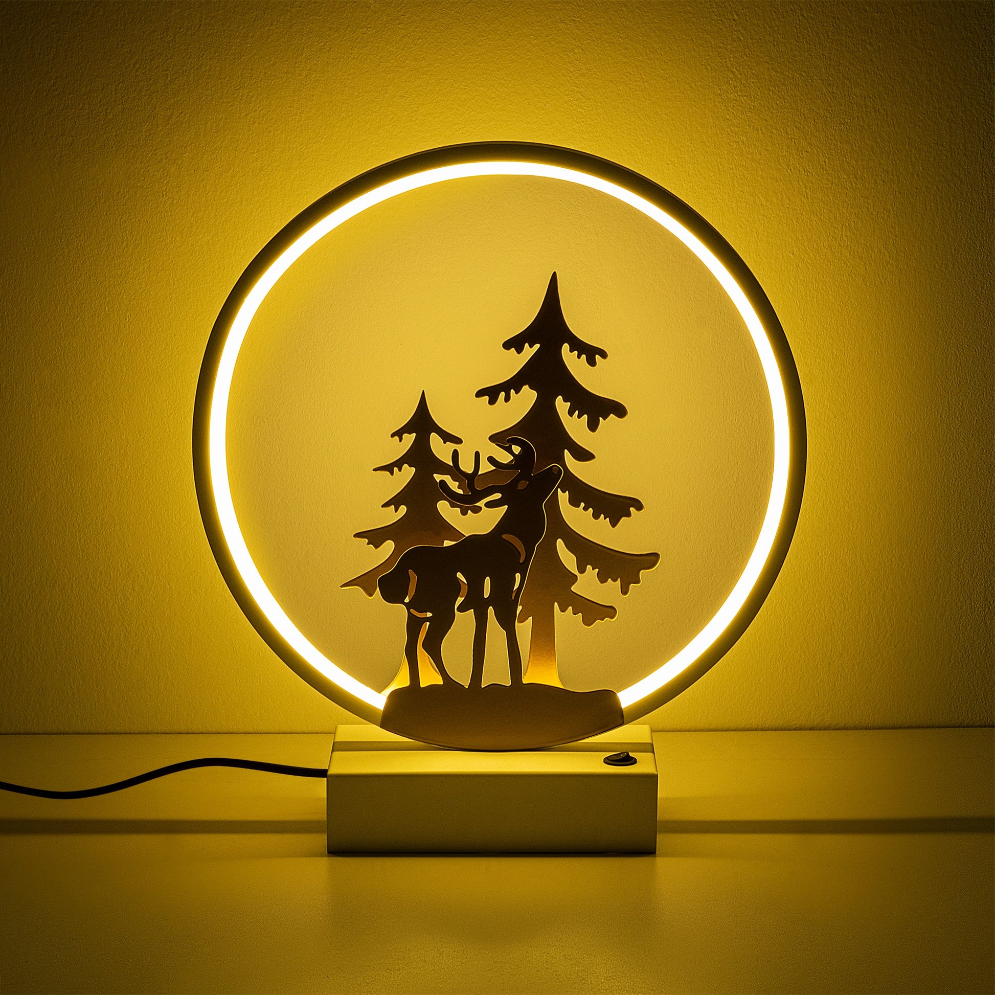 Apresentamos o nosso deslumbrante candeeiro de mesa, uma mistura perfeita de glamour, natureza e o espírito festivo do Natal. Fabricado com 100% de metal, este candeeiro exala durabilidade e sofisticação, tornando-o uma adição intemporal a qualquer divisão.