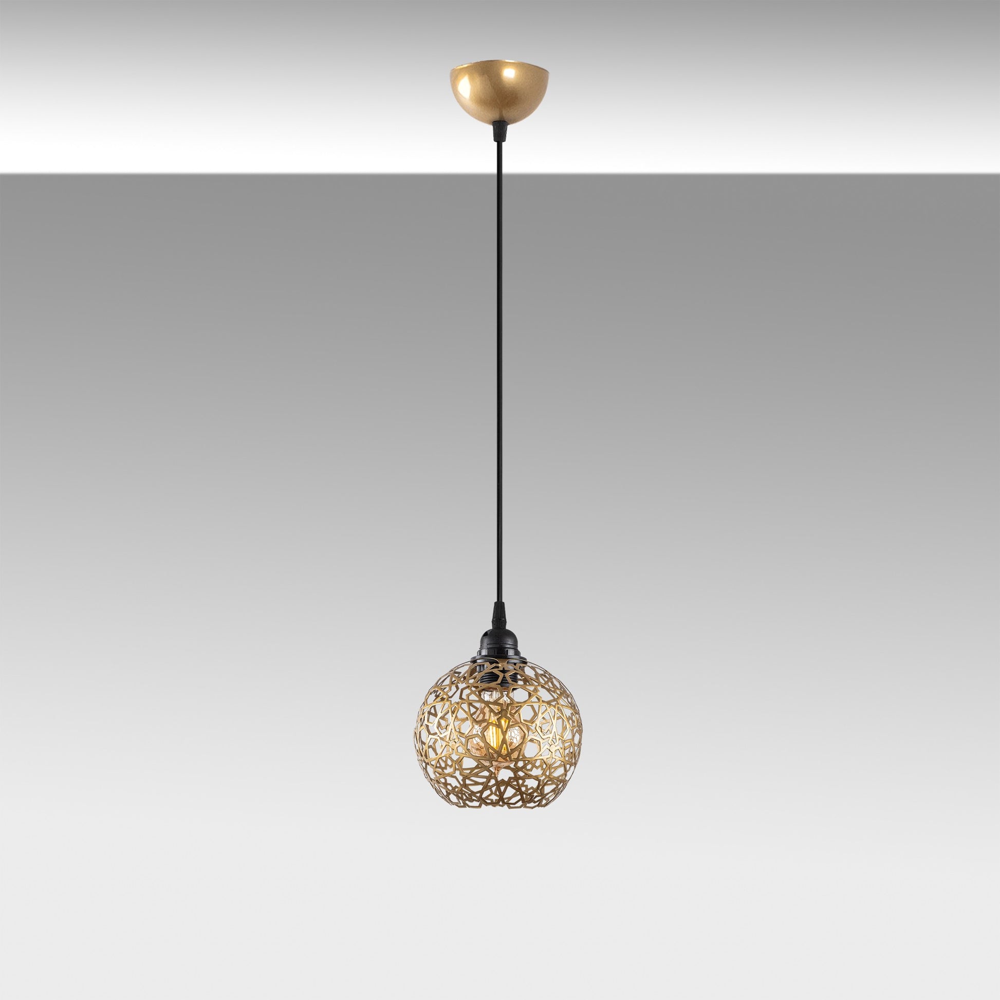 O intrincado corpo metálico deste candeeiro é muito bem trabalhado, apresentando um luxuoso acabamento dourado que elevará instantaneamente a decoração da sua casa. O design elegante e a altura ajustável tornam-no perfeito para qualquer divisão da sua casa, quer seja a sala de estar, a sala de jantar ou o quarto.