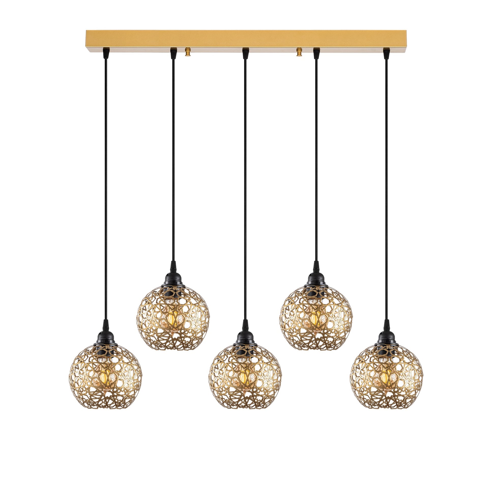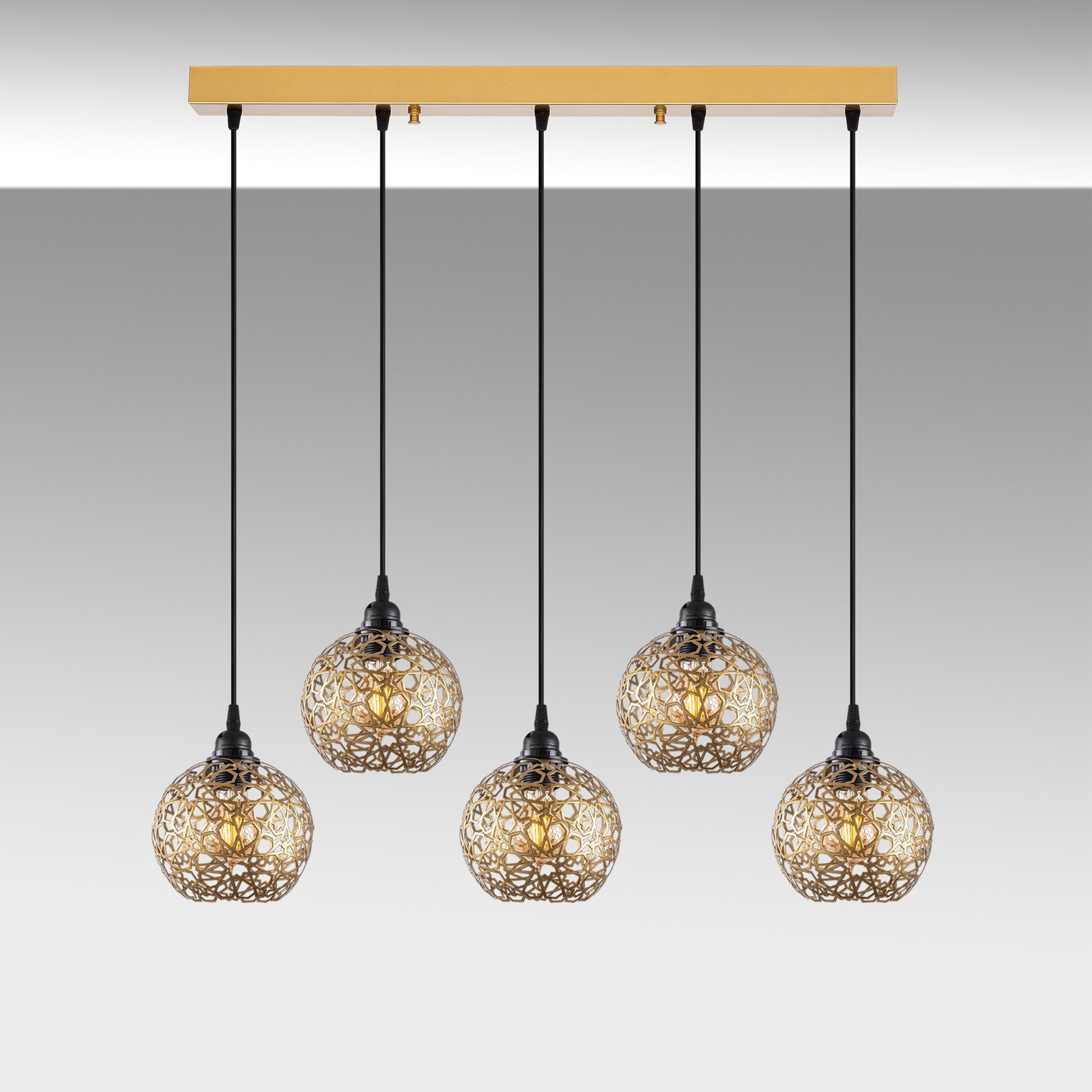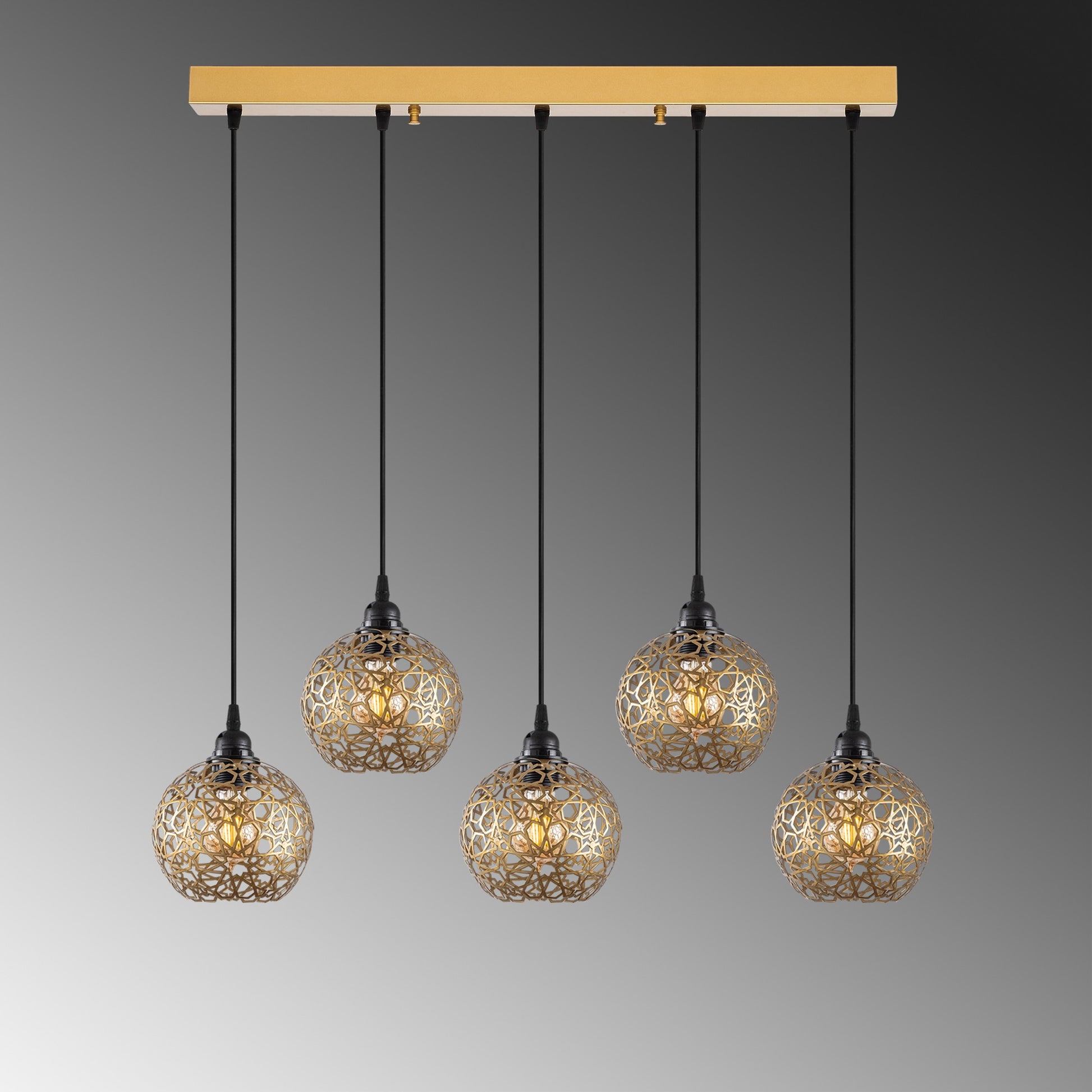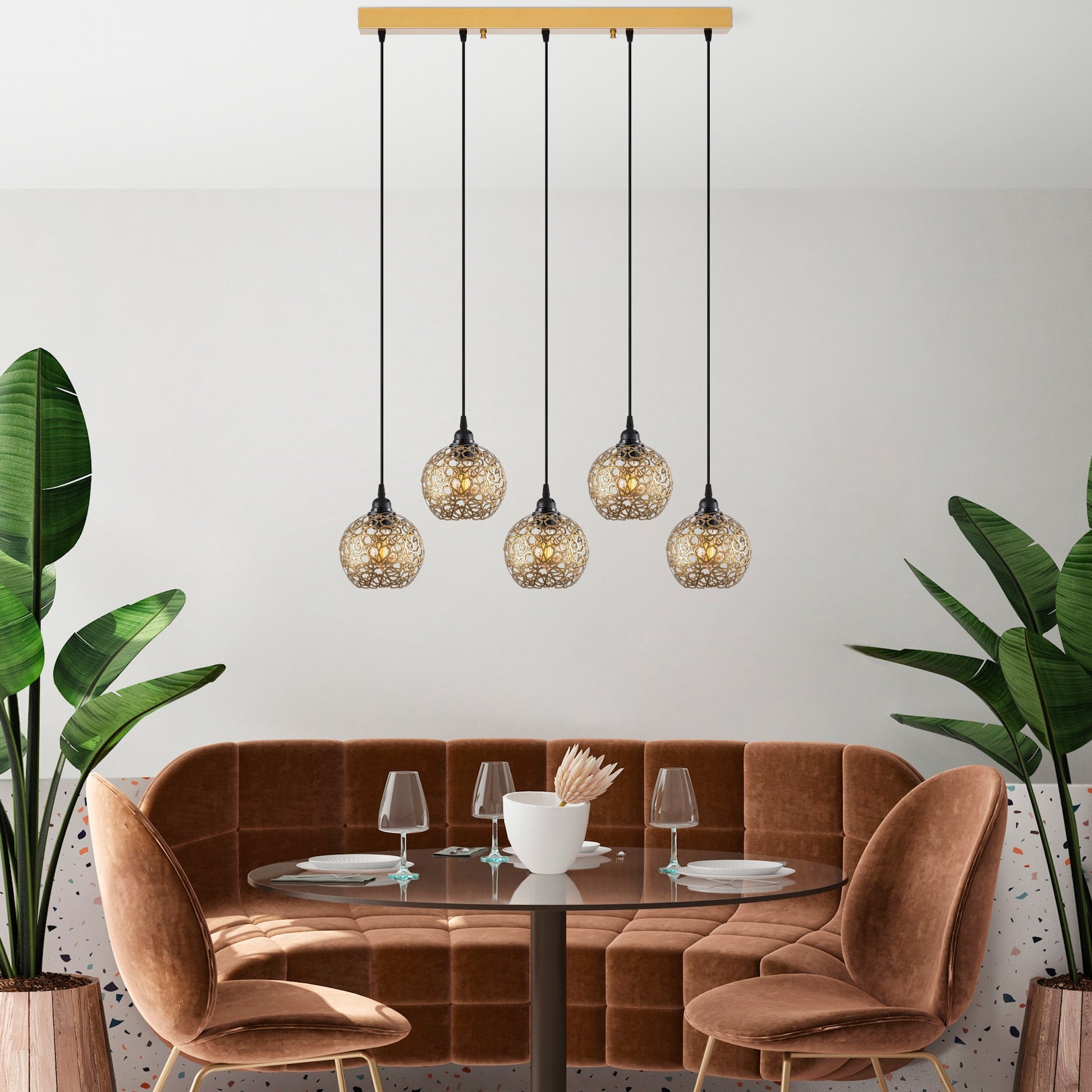 O candeeiro possui 5 casquilhos para lâmpadas e27, permitindo-lhe escolher a iluminação perfeita para a sua divisão. Crie um ambiente acolhedor e convidativo com uma iluminação suave e fraca ou ilumine o seu espaço com lâmpadas vibrantes e energeticamente eficientes.