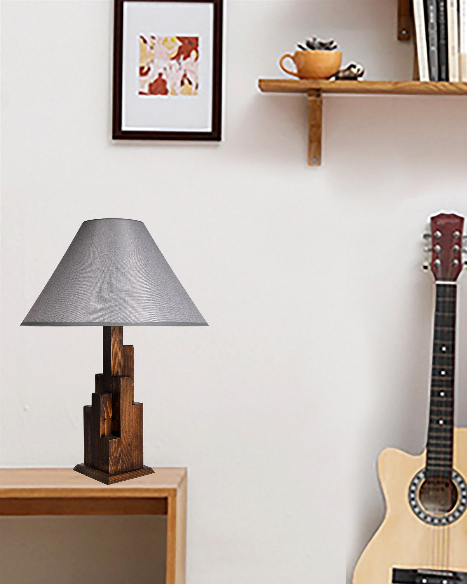 Ilumine seu espaço com o brilho quente e acolhedor de nossa Lâmpada de Mesa de Madeira. Feita com um corpo de madeira e uma cúpula de tecido, esta lâmpada exala um charme rústico e aconchegante que instantaneamente eleva qualquer ambiente da sua casa. A combinação de cores noz e cinza adiciona um toque de sofisticação, tornando-a uma peça versátil que complementa qualquer estilo de decoração.