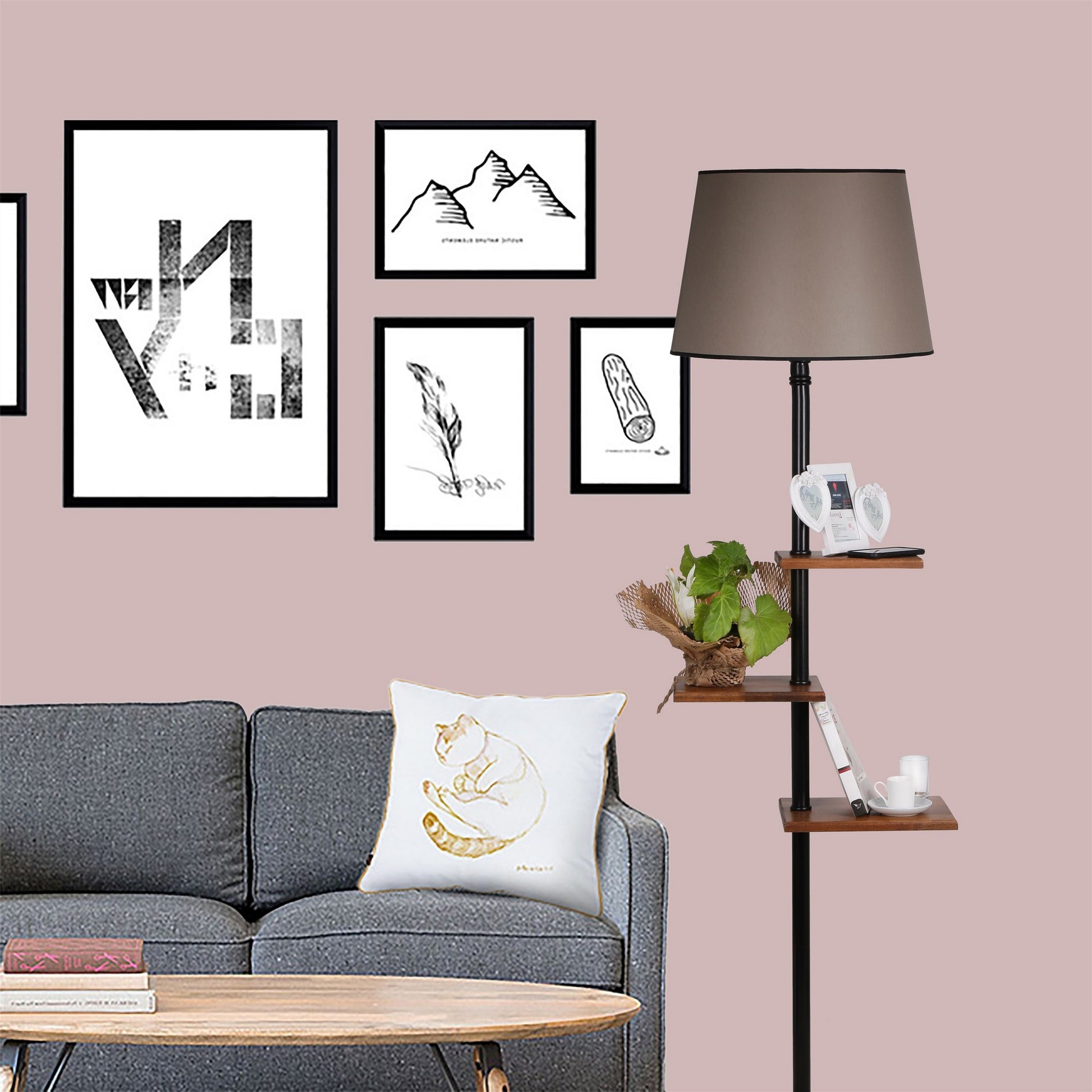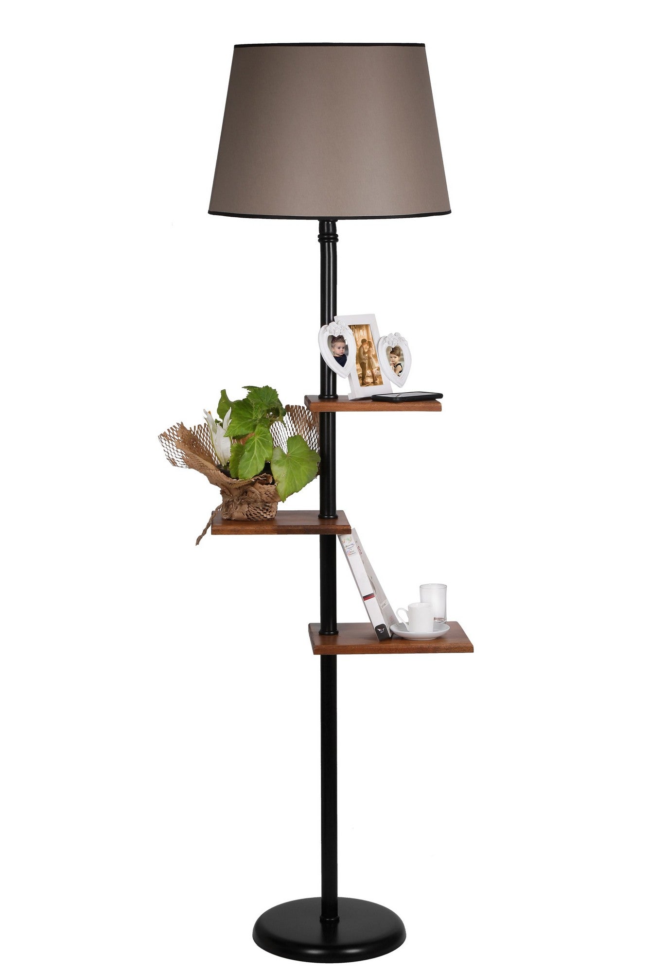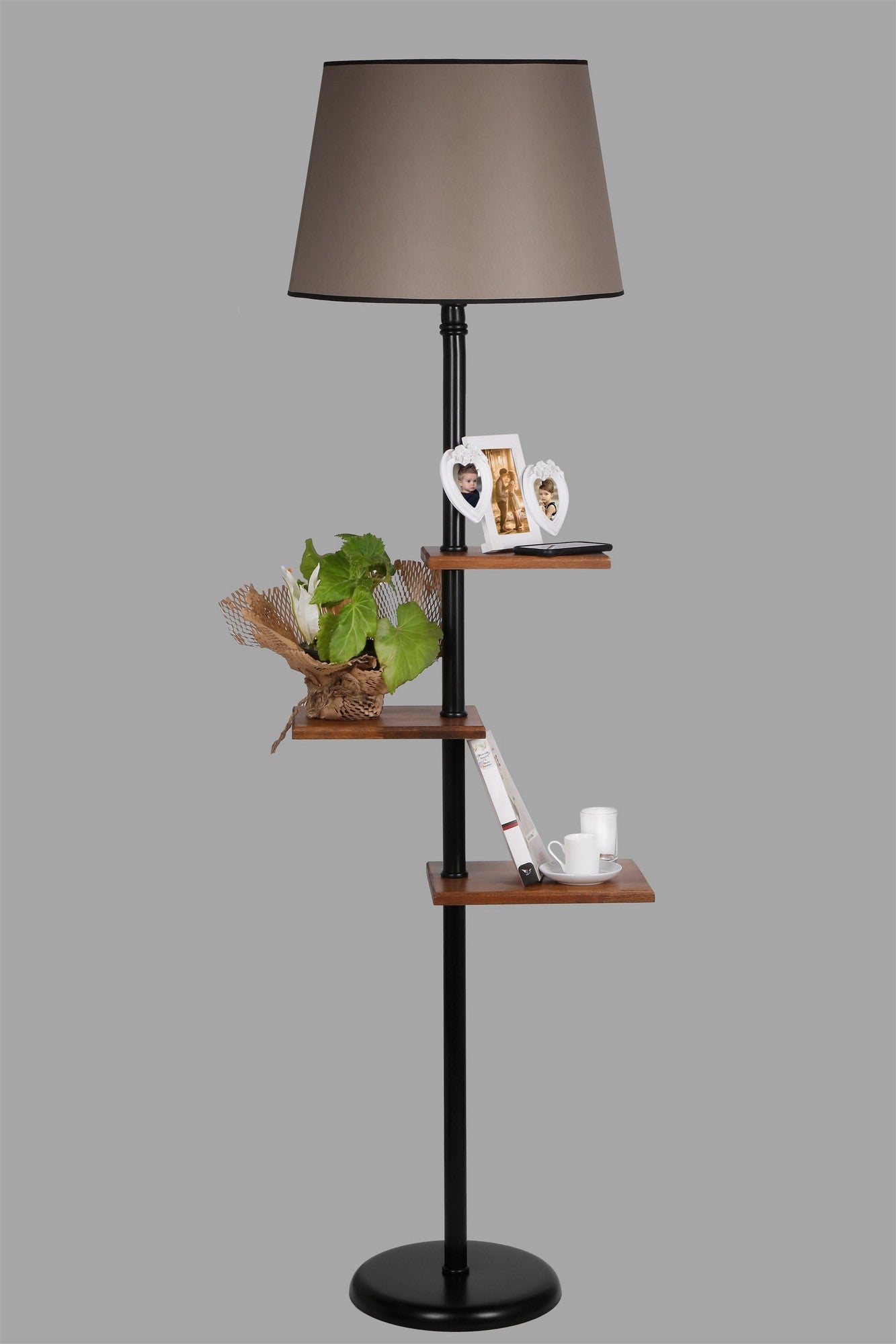 Esta luminária de chão apresenta um design único com uma cúpula de tecido e prateleiras de madeira, tornando-a uma peça versátil e funcional para qualquer ambiente. A cor preta adiciona um toque de sofisticação, enquanto a tinta seca em forno eletrostático garante durabilidade e longevidade.