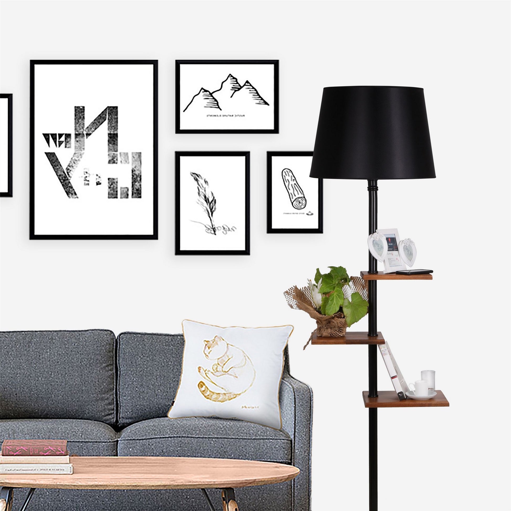 O design único desta lâmpada de piso apresenta três prateleiras de madeira que não apenas oferecem espaço adicional de armazenamento, mas também adicionam um toque de calor à estética geral. O conceito inspirado no industrial e escandinavo desta lâmpada a torna uma peça versátil que complementará qualquer estilo de decoração.