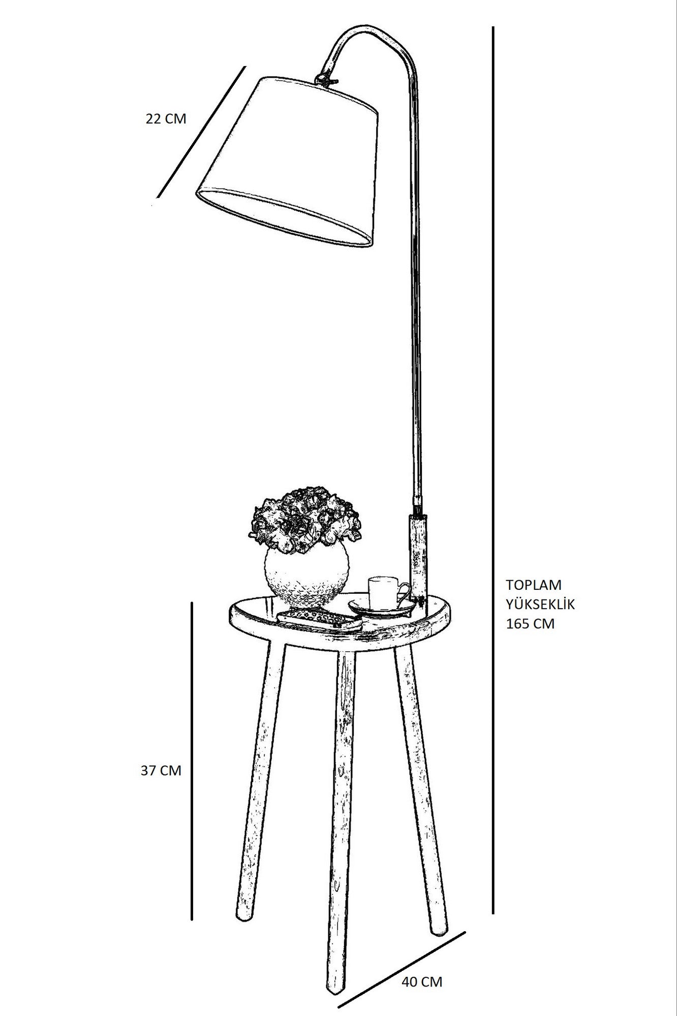 Esta luminária de chão não só fornece iluminação abundante, mas também oferece uma mesa conveniente para colocar seus itens essenciais. A tinta seca eletrostática garante durabilidade e longevidade, para que você possa desfrutar desta luminária por muitos anos.