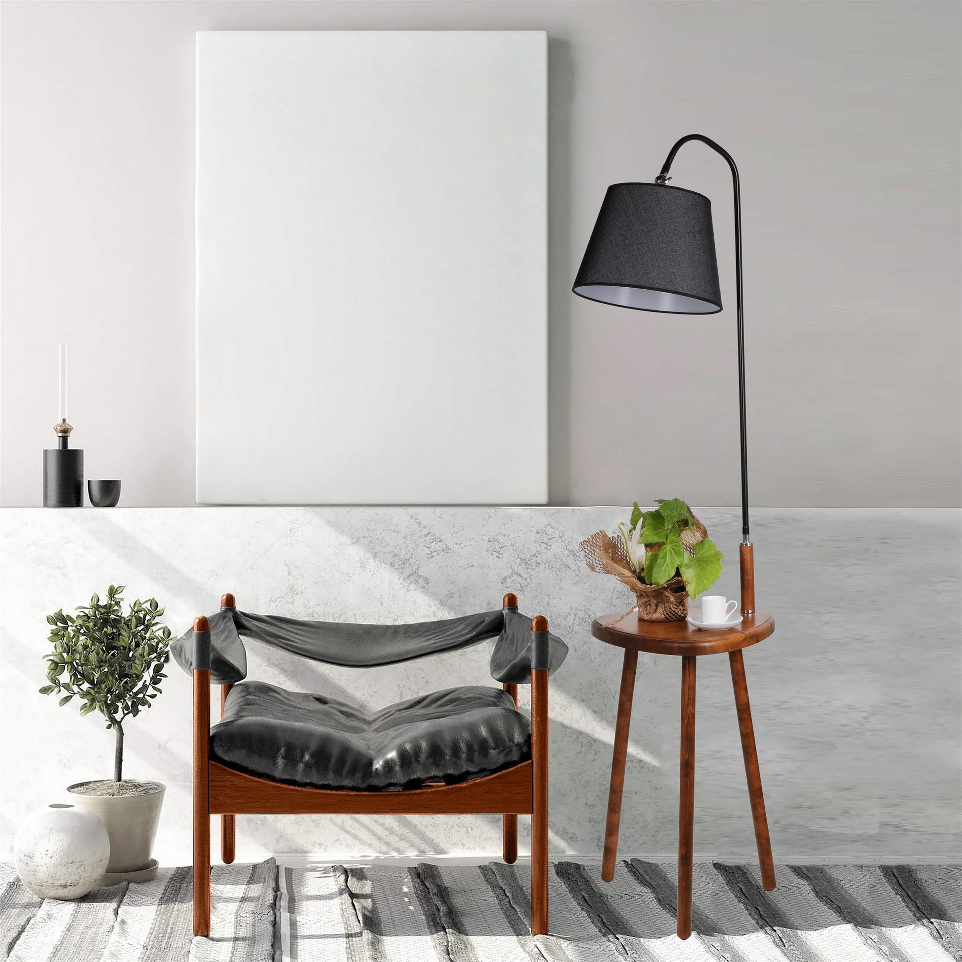 Crie um cantinho aconchegante para leitura ou adicione um brilho acolhedor à sua sala de estar com este versátil abajur de chão. A cúpula de tecido proporciona uma luz suave e difusa, perfeita para criar uma atmosfera relaxante após um longo dia. A mesa de madeira adiciona um elemento funcional, permitindo que você exiba sua decoração favorita ou mantenha itens essenciais ao alcance.