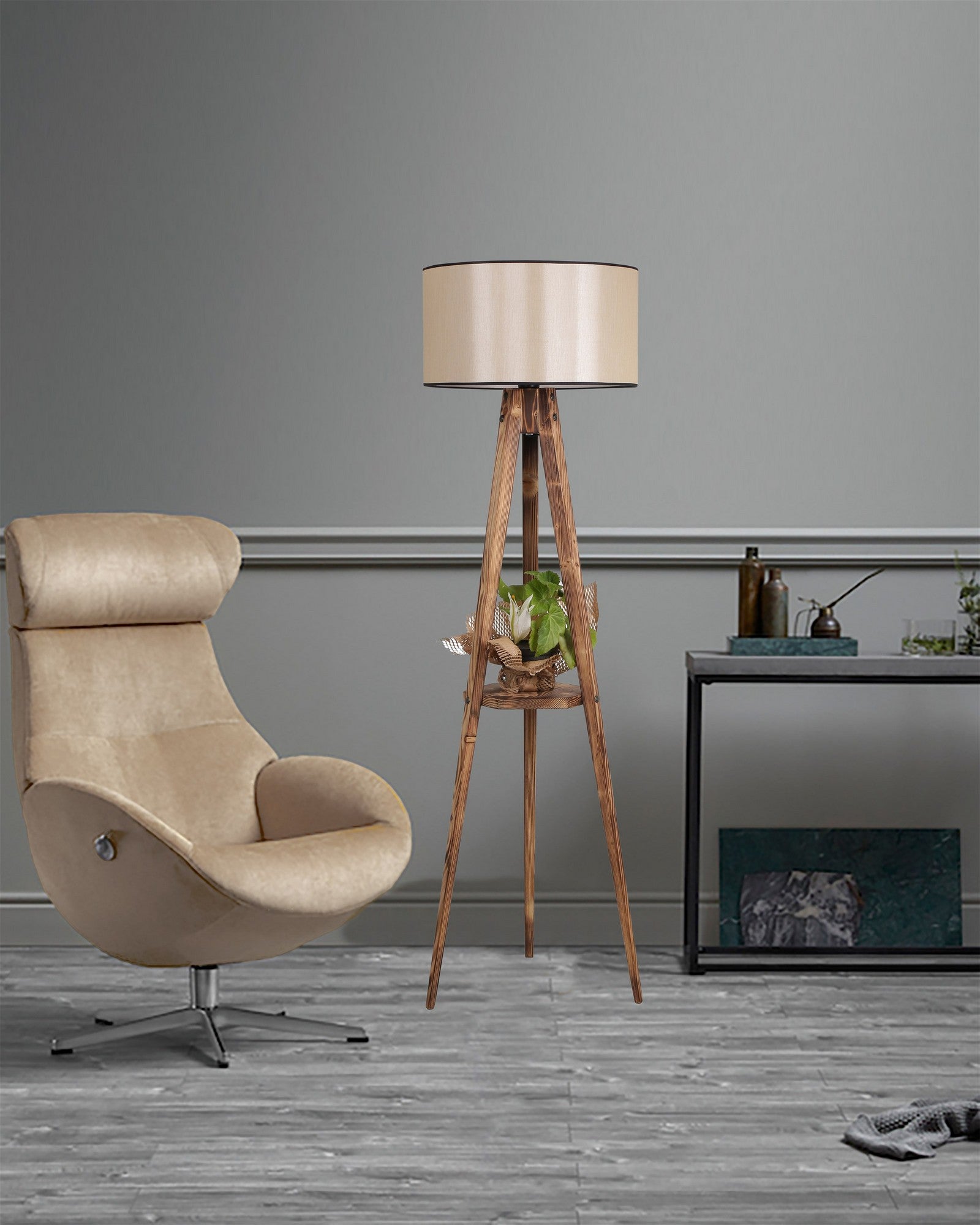 Ilumine sua casa com calor e estilo com nossa deslumbrante Lâmpada de Piso de Madeira. Esta peça elegante apresenta um corpo de madeira e uma cúpula de tecido, exalando uma atmosfera aconchegante e convidativa em qualquer ambiente. A adição de uma prateleira de madeira não só acrescenta funcionalidade, mas também realça a estética geral da lâmpada.
