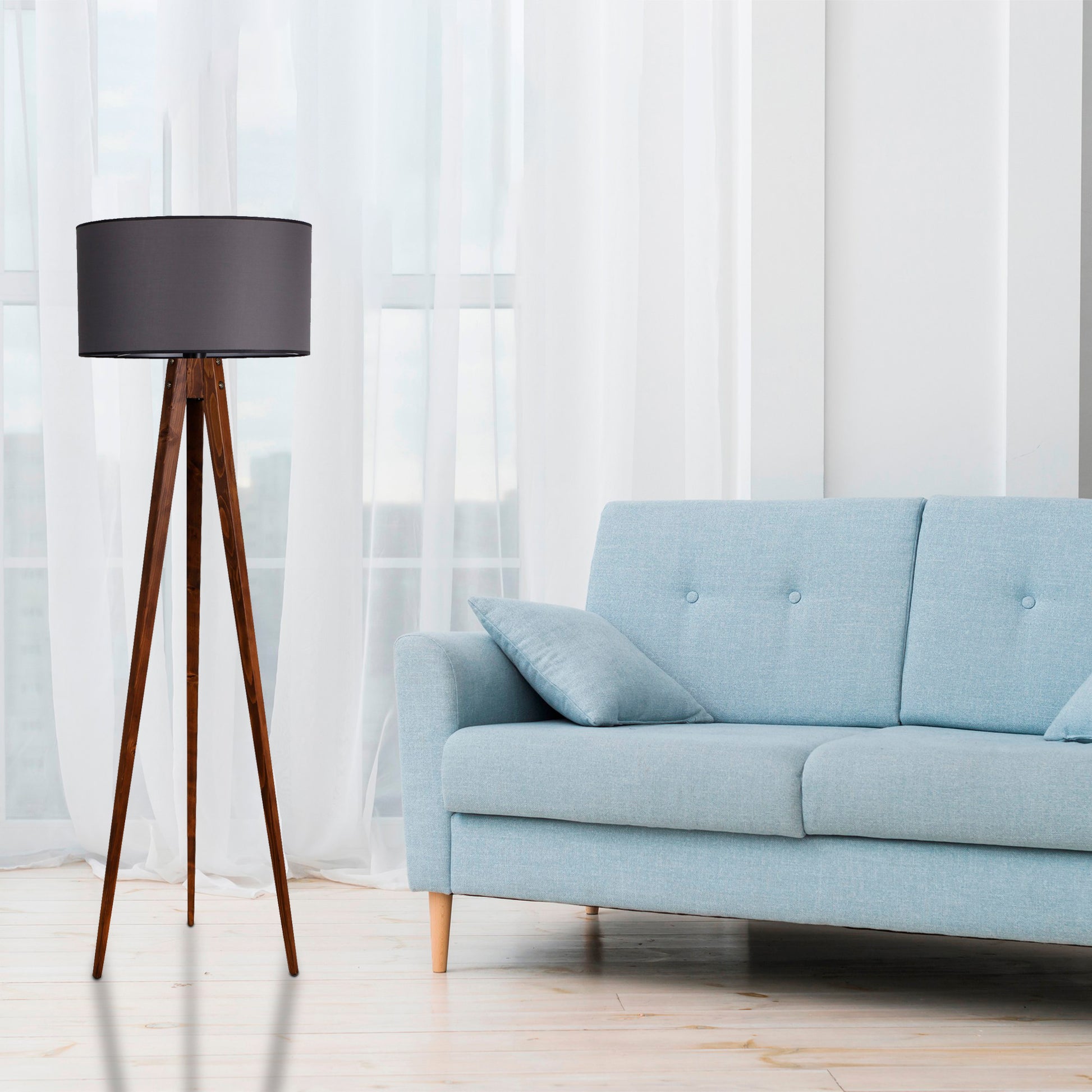 Candeeiro de Pé-Tripod-Nogueira Cinza