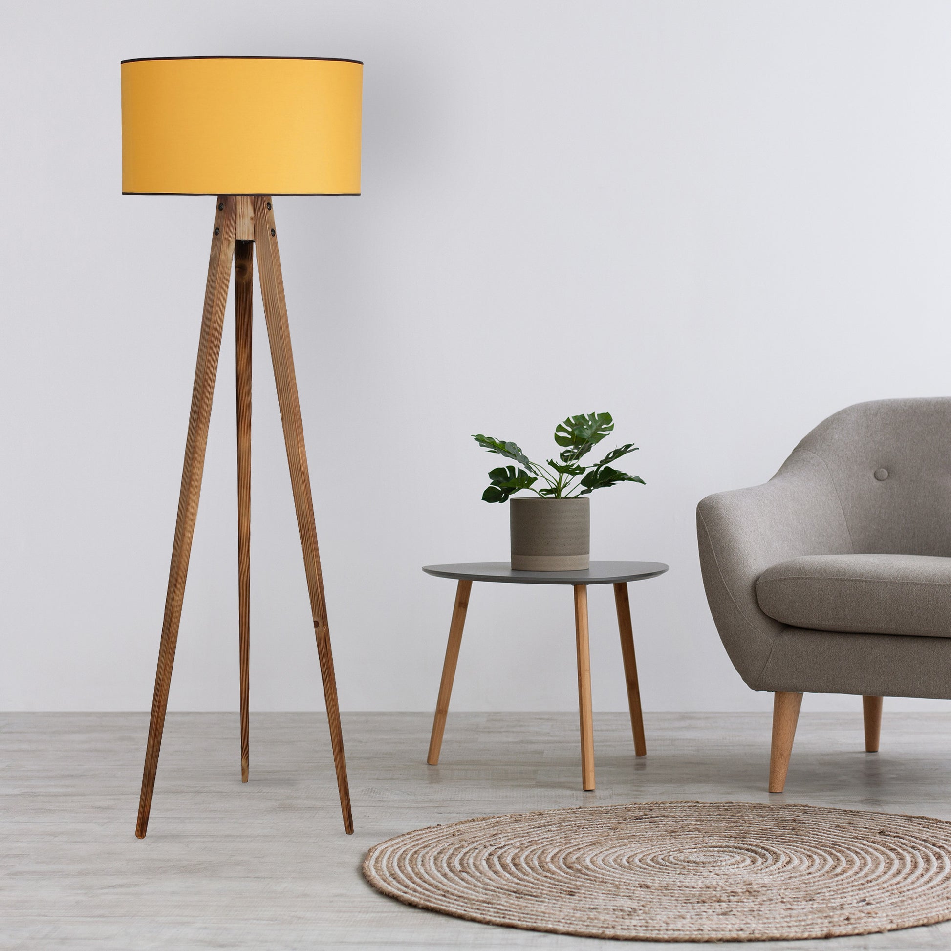 A Lâmpada de Piso de Madeira possui um design elegante e moderno que complementará qualquer estilo de decoração. A combinação das cores marrom e mostarda adiciona um toque de cor ao seu espaço, tornando-a uma peça de destaque em sua casa.