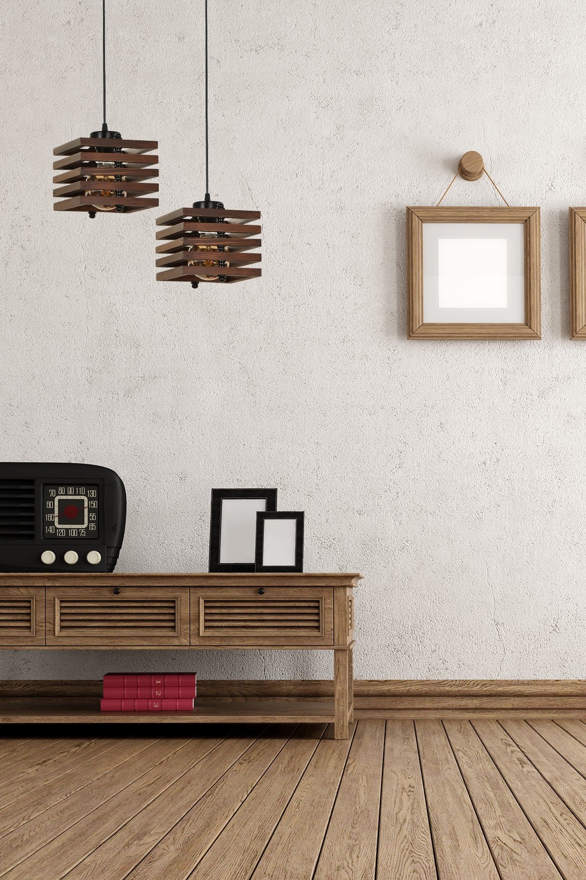 Candeeiro de Teto – 18 cm x 70 cm – Marrom – Madeira