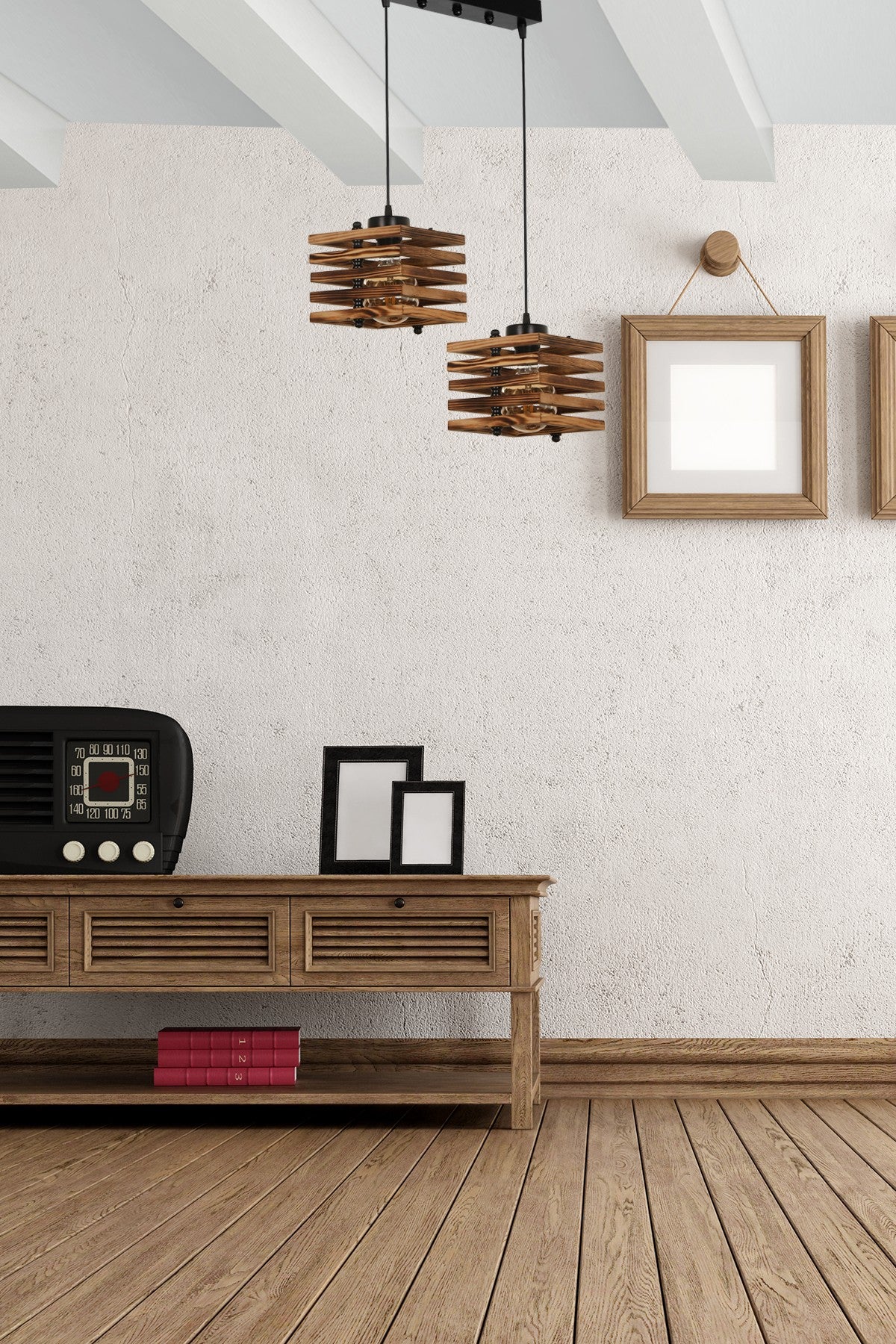 Candeeiro de Teto – 18 cm de diâmetro e 70 cm de altura – Marrom – Madeira