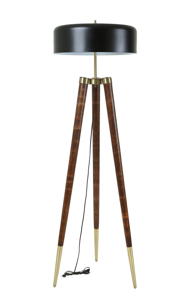 Candeeiro de Pé – 165 cm – Preto e Nogueira – Metal e Carpe