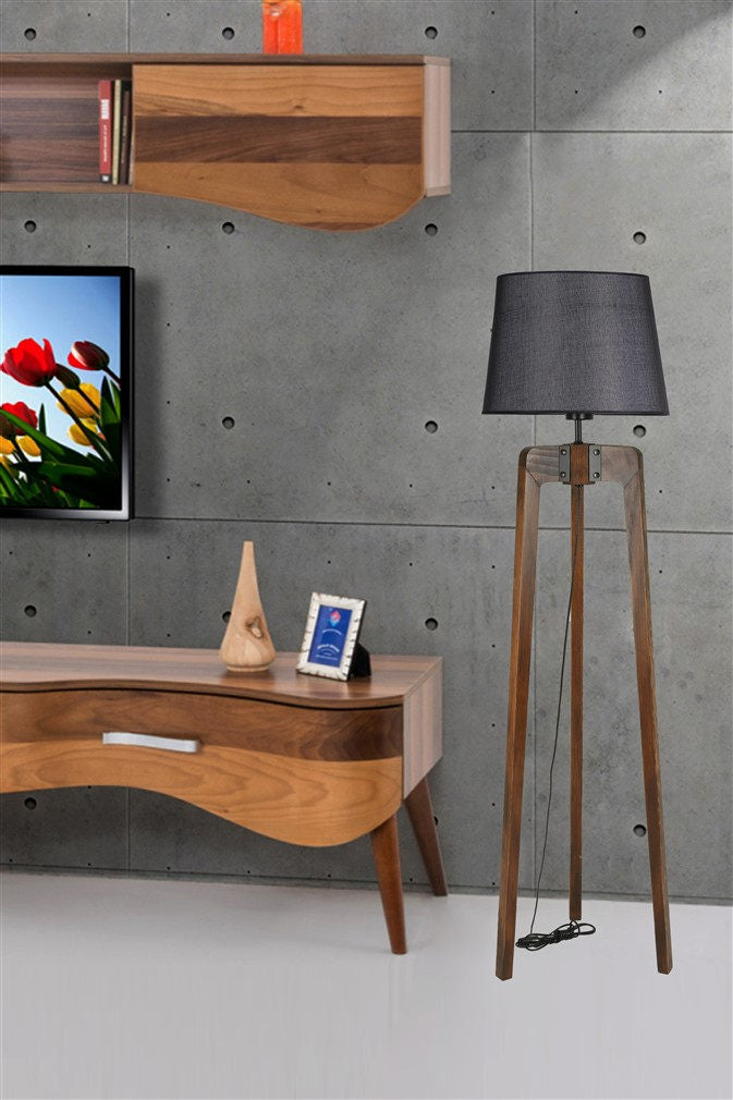 Candeeiro de Pé – 170 cm – Preto e Nogueira – Madeira de FIR