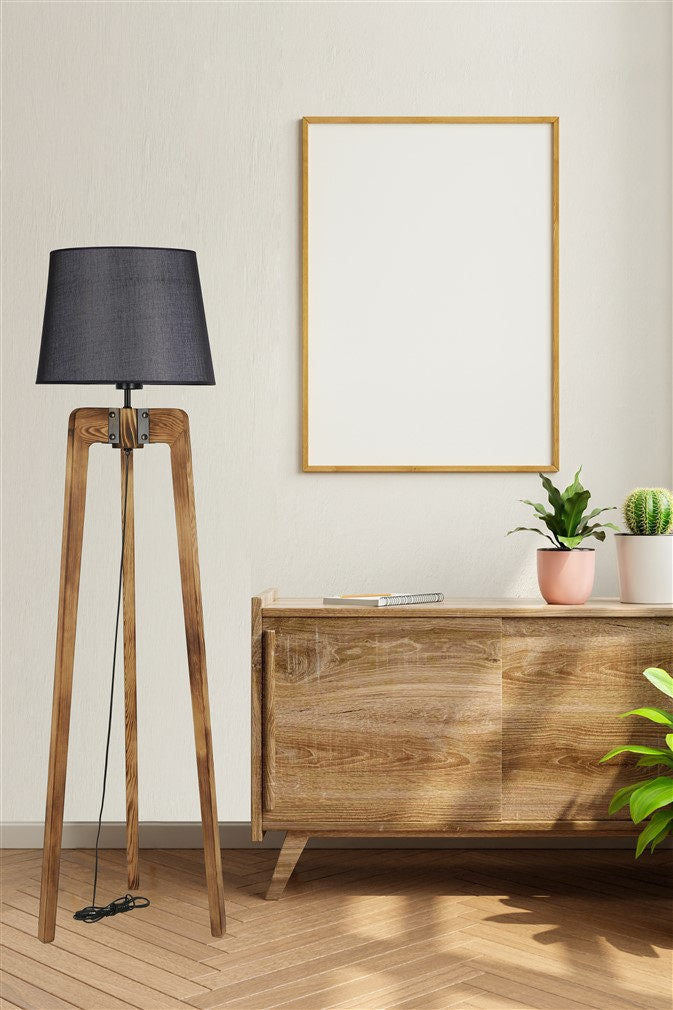 Candeeiro de Pé – 170 cm – Preto e Nogueira – Madeira de FIR