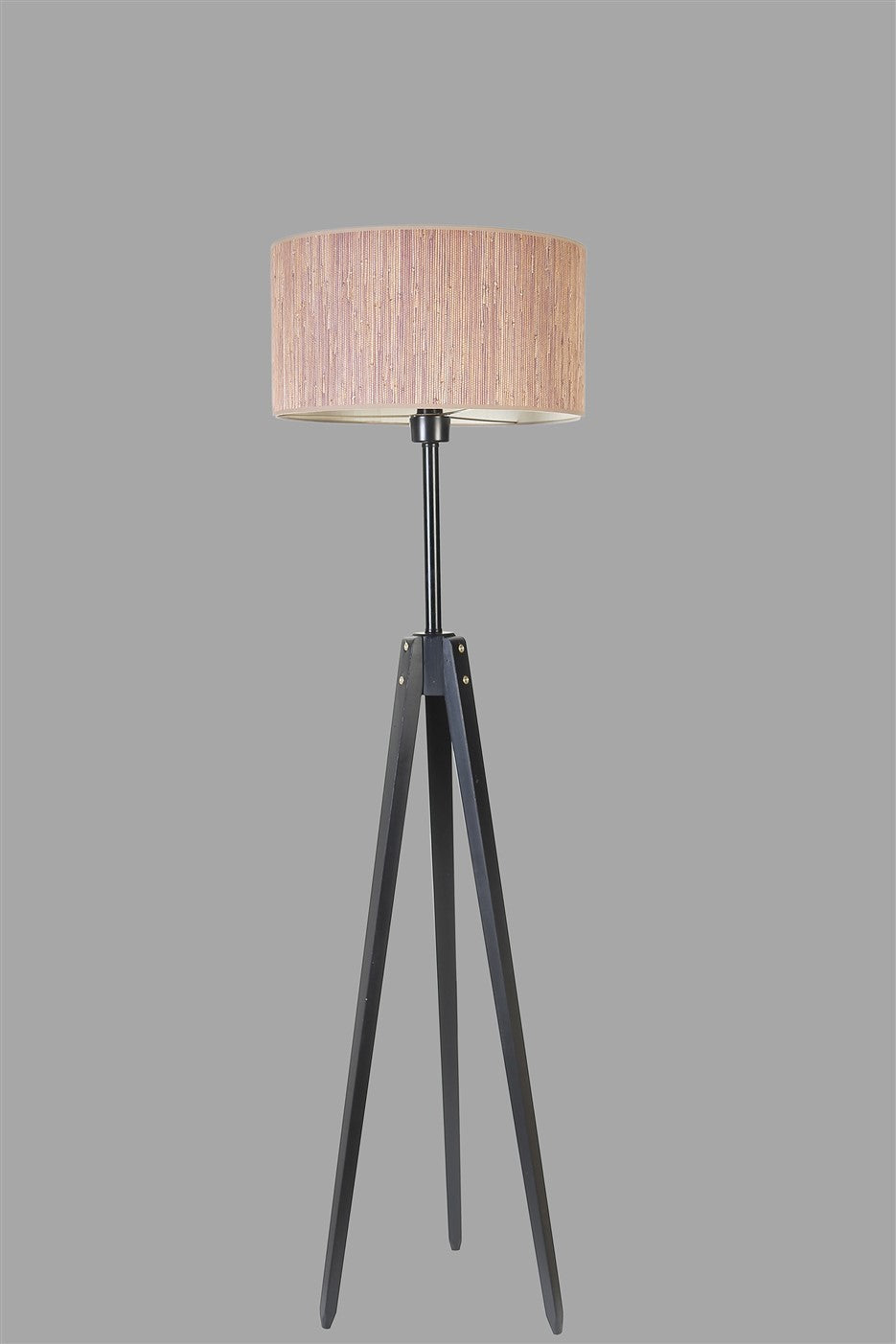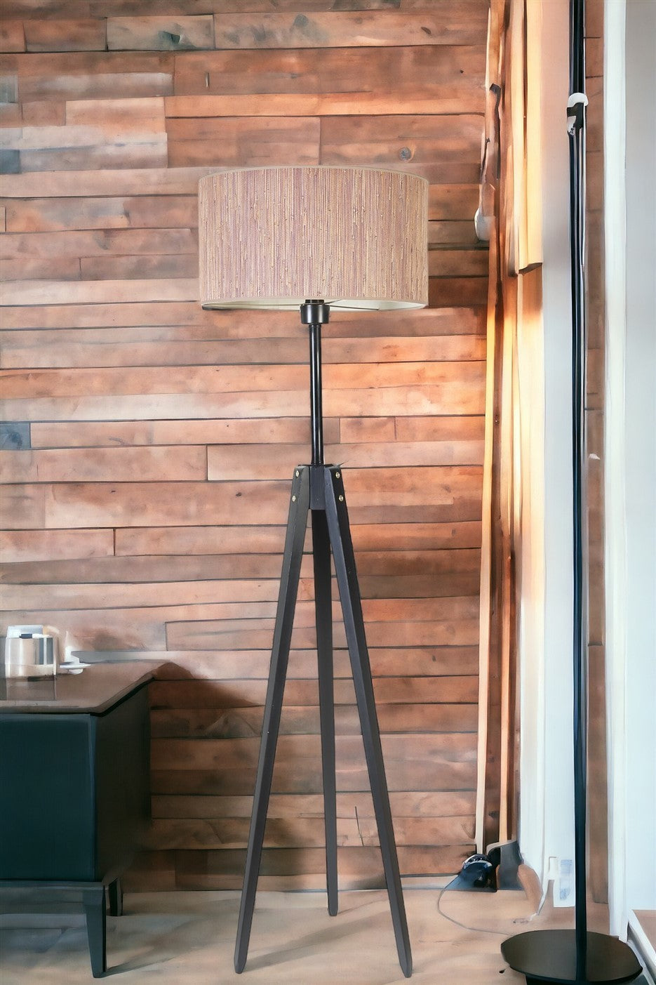 Candeeiro de Pé em Metal e Madeira – 155 cm – Carvalho e Preto