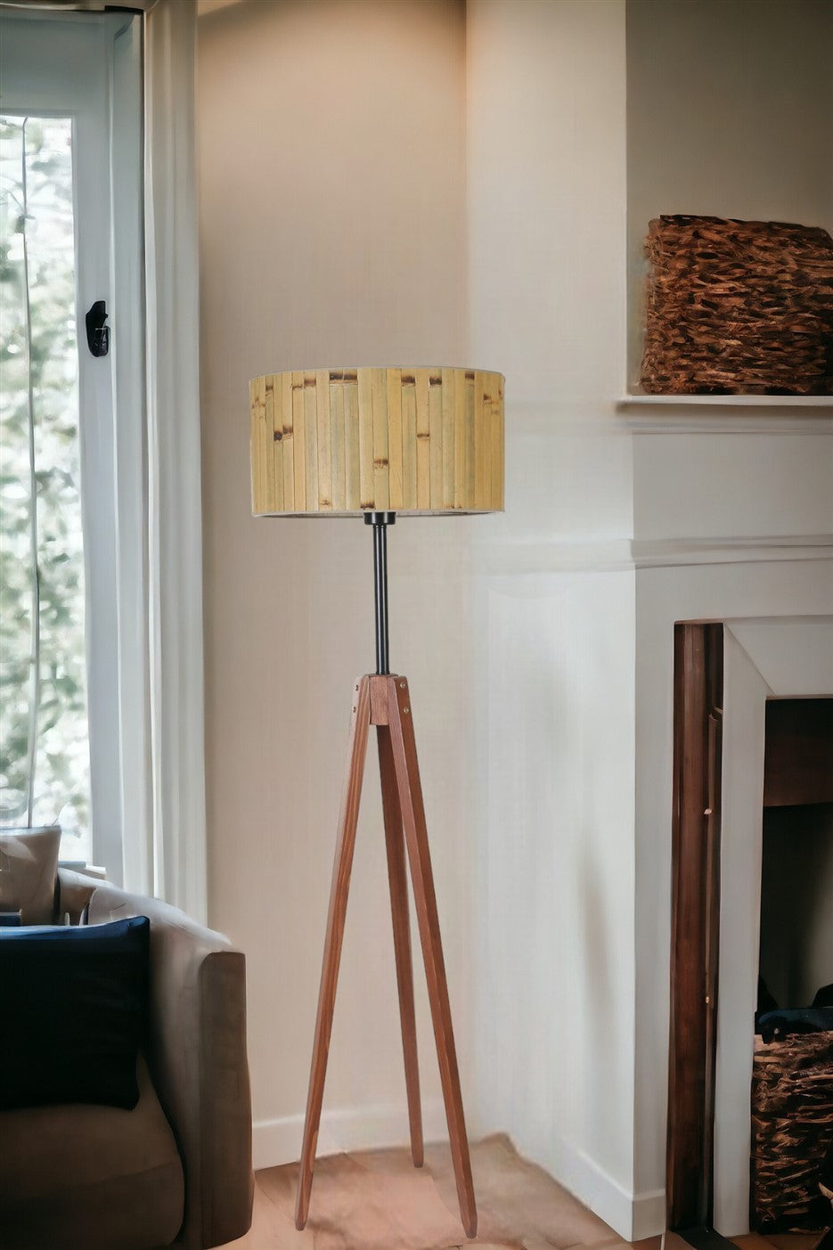 Candeeiro de Pé – 155 cm – Carvalho e Noz – Metal e Madeira