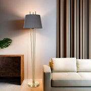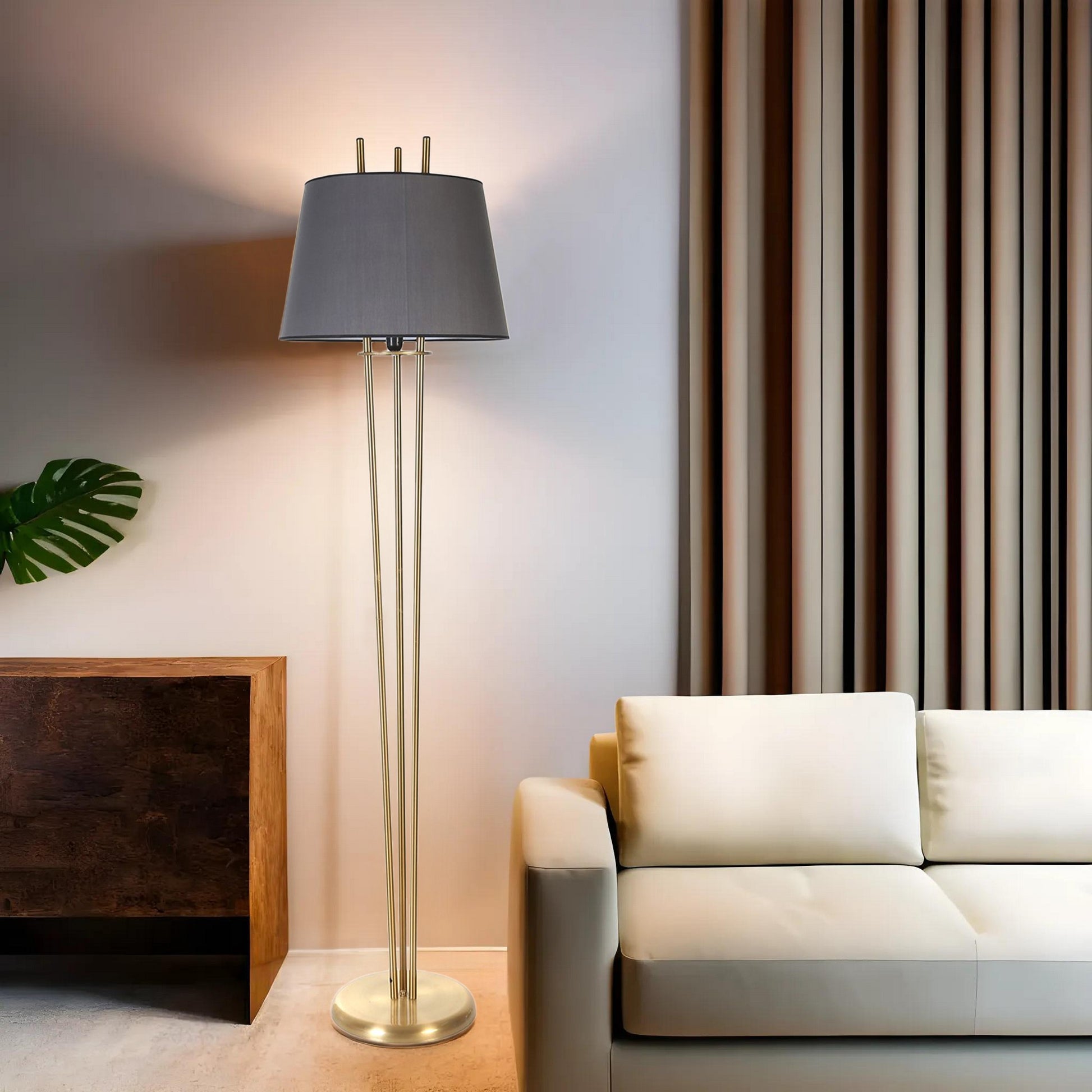 Candeeiro de Pé – 165 cm – Cinza Escuro e Dourado – Metal e Tecido