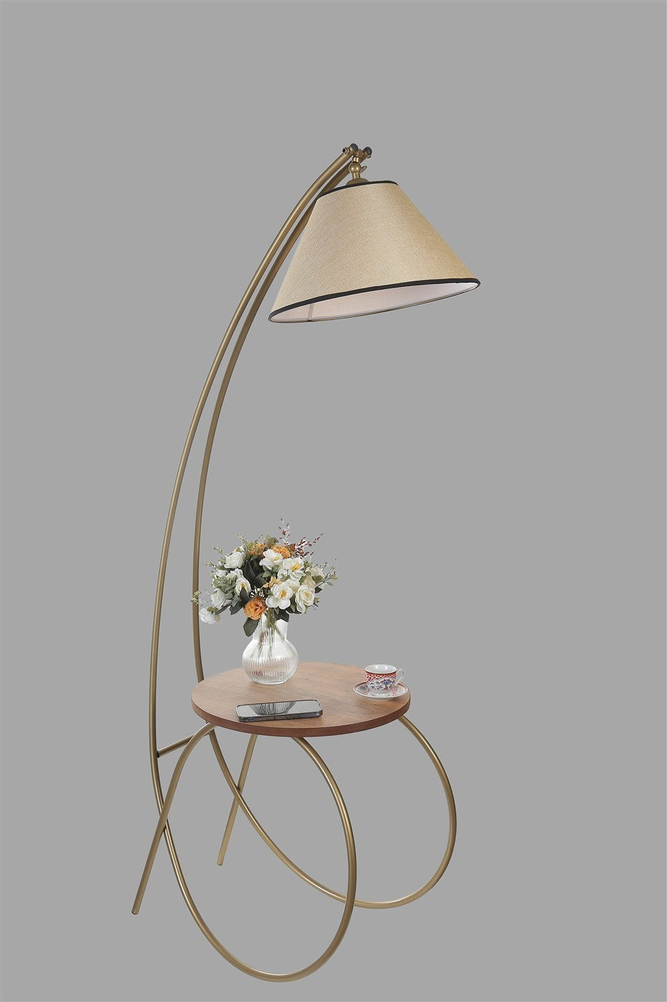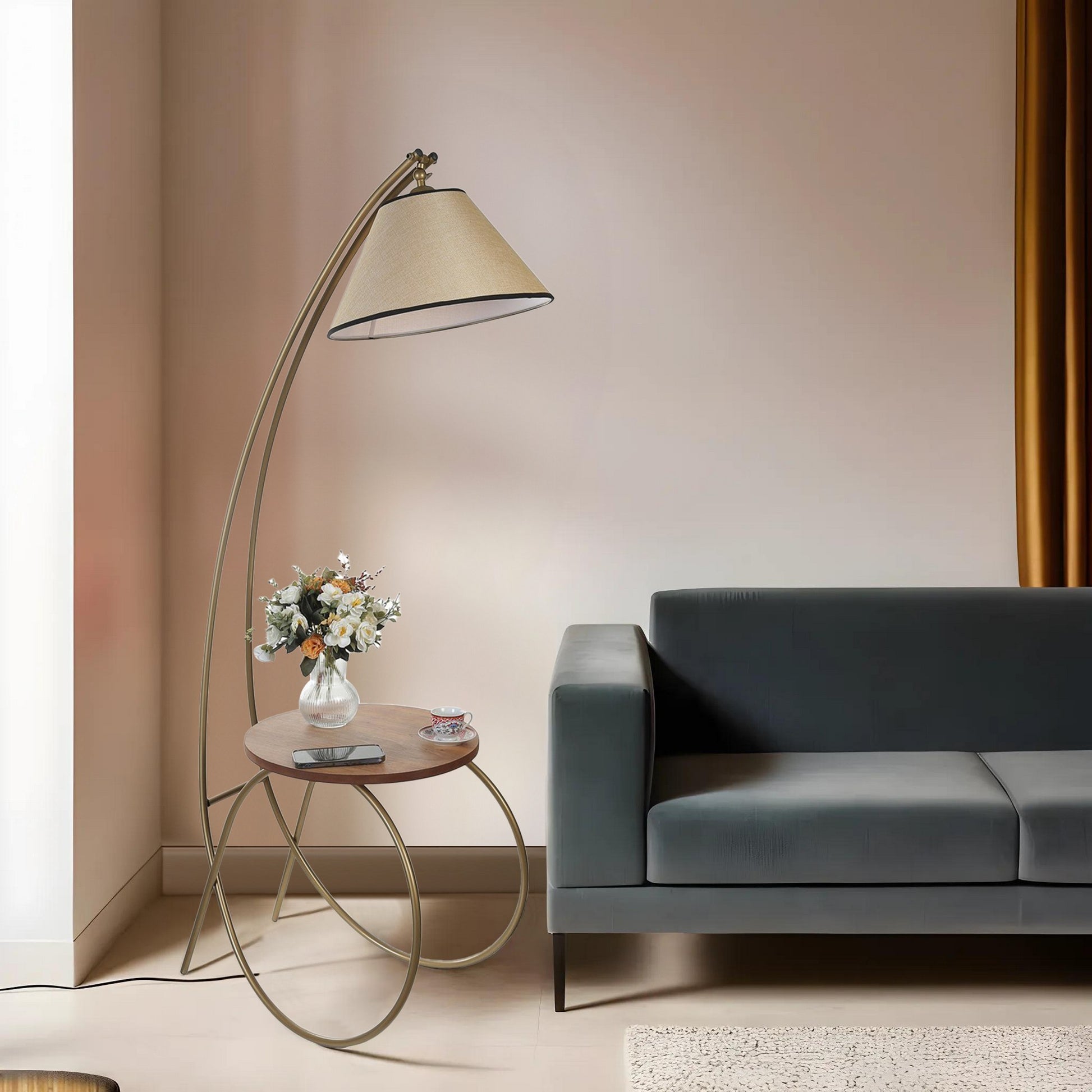 Candeeiro de Pé – 165 cm – Dourado e Noz – Metal e tecido