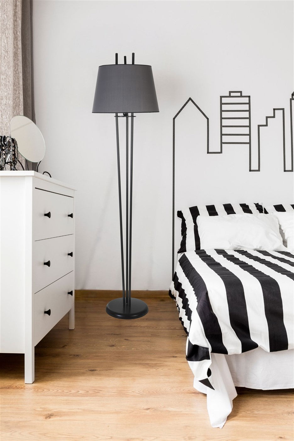 Ilumine seu espaço de vida com nosso deslumbrante Abajur de Pé com Corpo de Metal. Este elegante abajur apresenta um design sofisticado com uma cúpula de tecido, adicionando um toque de sofisticação a qualquer ambiente. A combinação de cores cinza escuro e preto traz um toque moderno e estiloso à sua decoração, tornando-o a adição perfeita para sua casa.